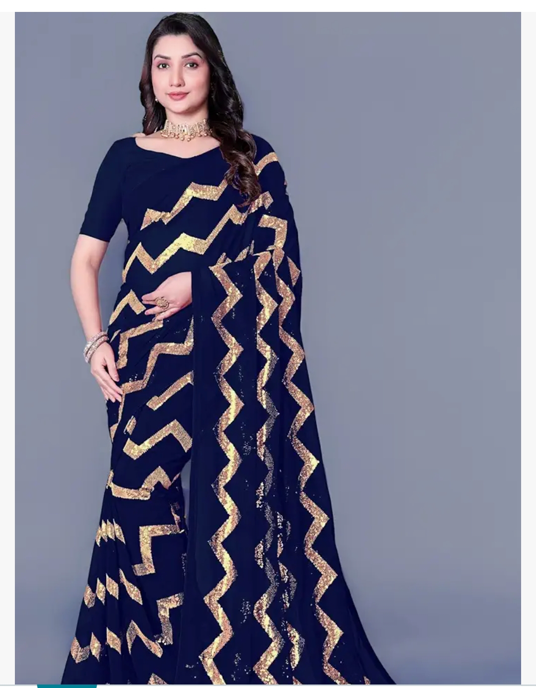 Kashmir Gallery- Women's Georgette Sarees Embroidered with Kashmiri Aari work | Stylish Saree with Unstitched Blouse Pieces