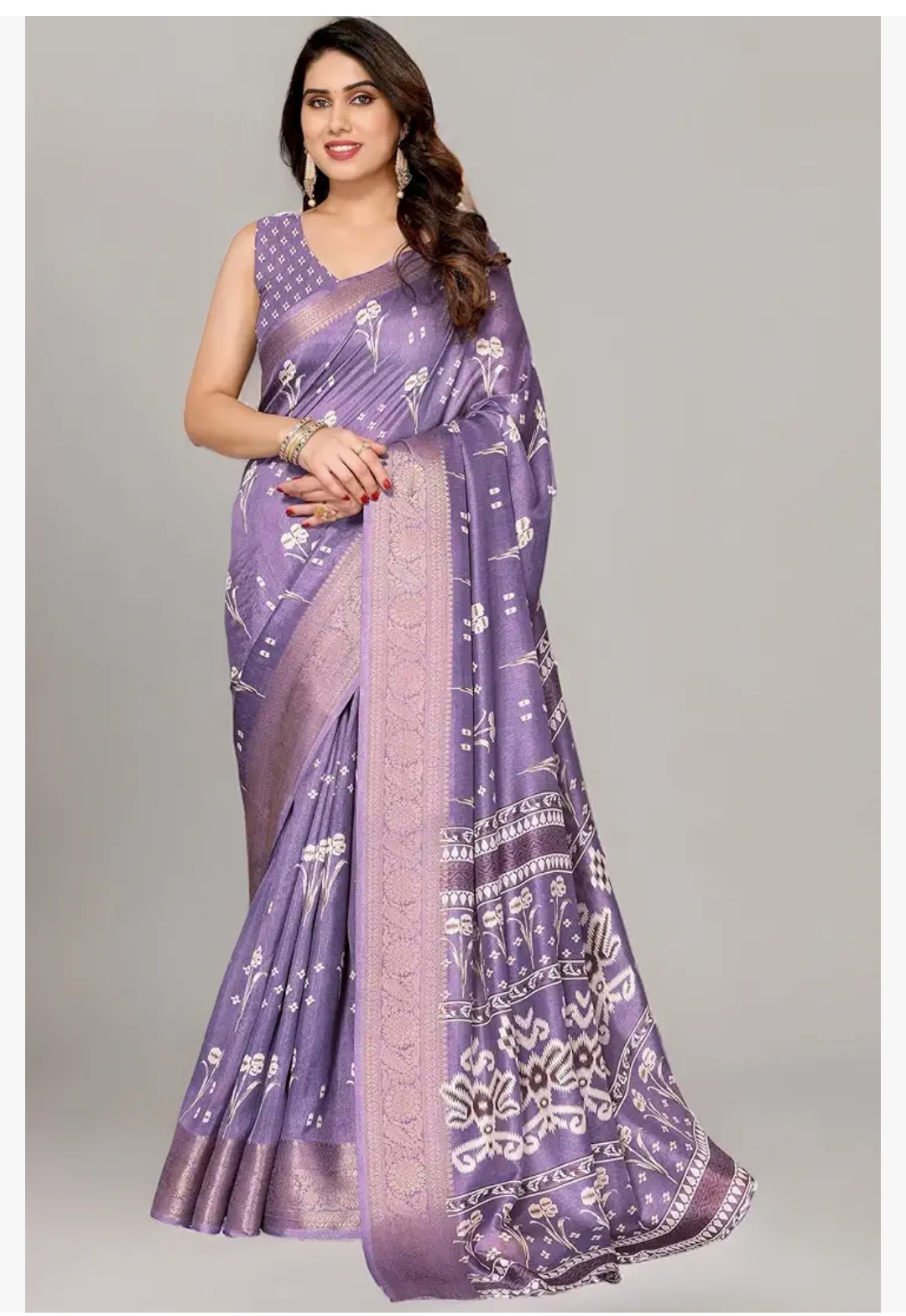MIRCHI FASHION Women's Silk Blend Block Printed Saree with Blouse Piece