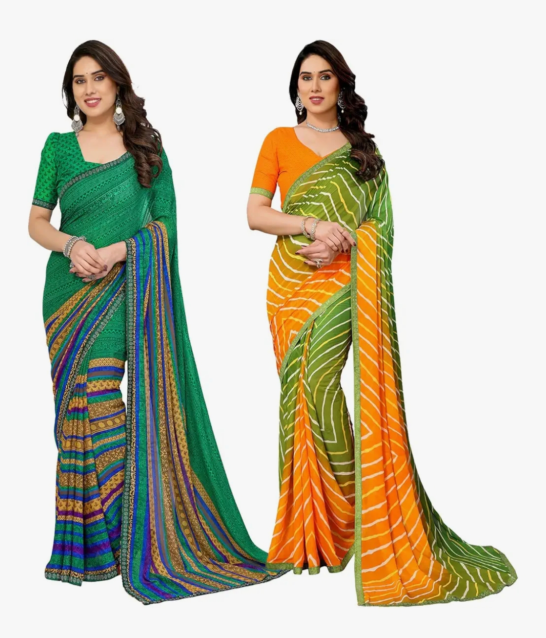 Printed, Self Design Bollywood Saree with Matching Blouse Piece | Stylish & Fancy Saree for Wedding, Parties, Casual Outings, Festivals (Combo Pack of 2)
