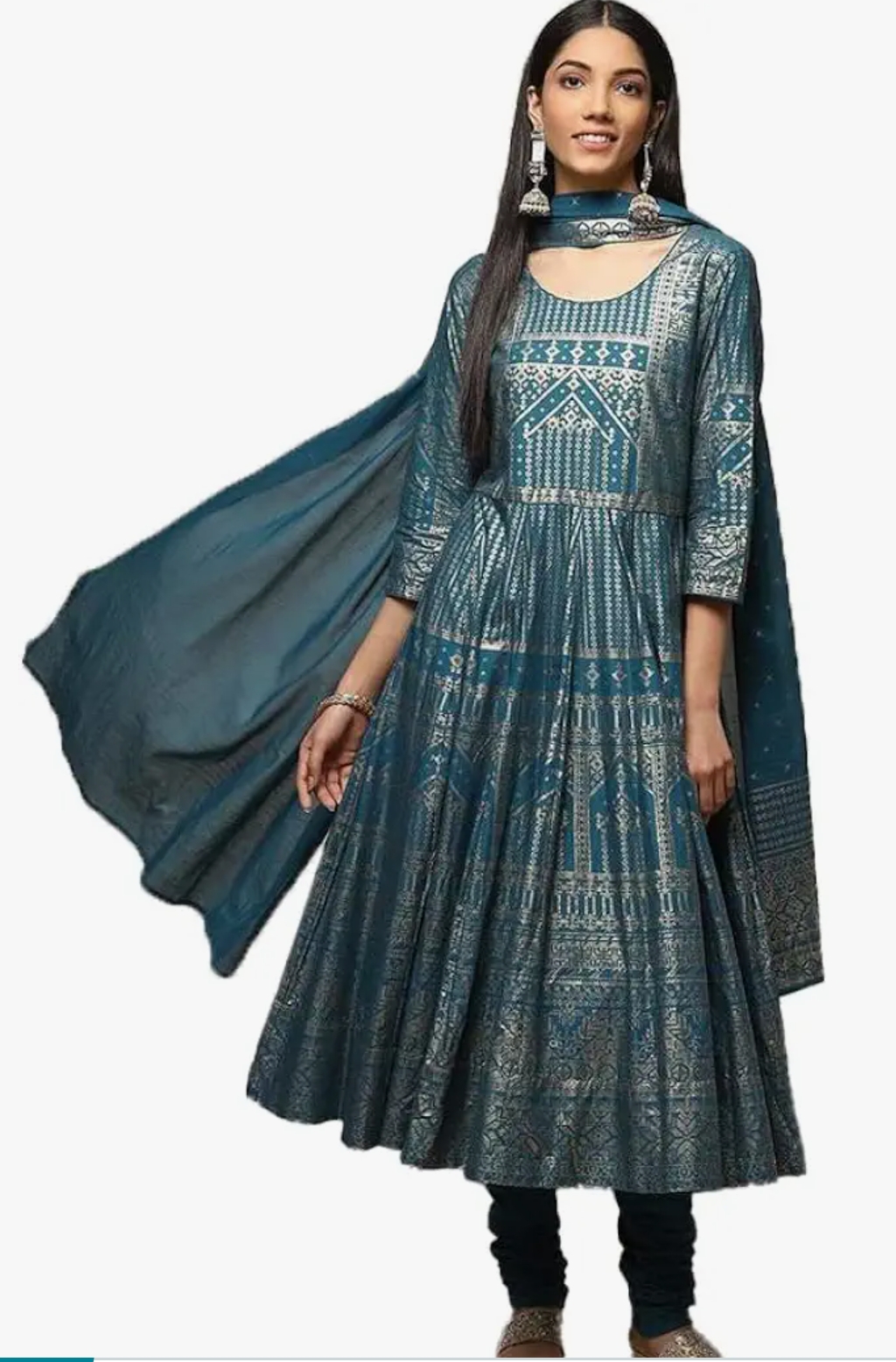 BIBA Women Cotton Printed Fitted Salwar Kurta Dupatta