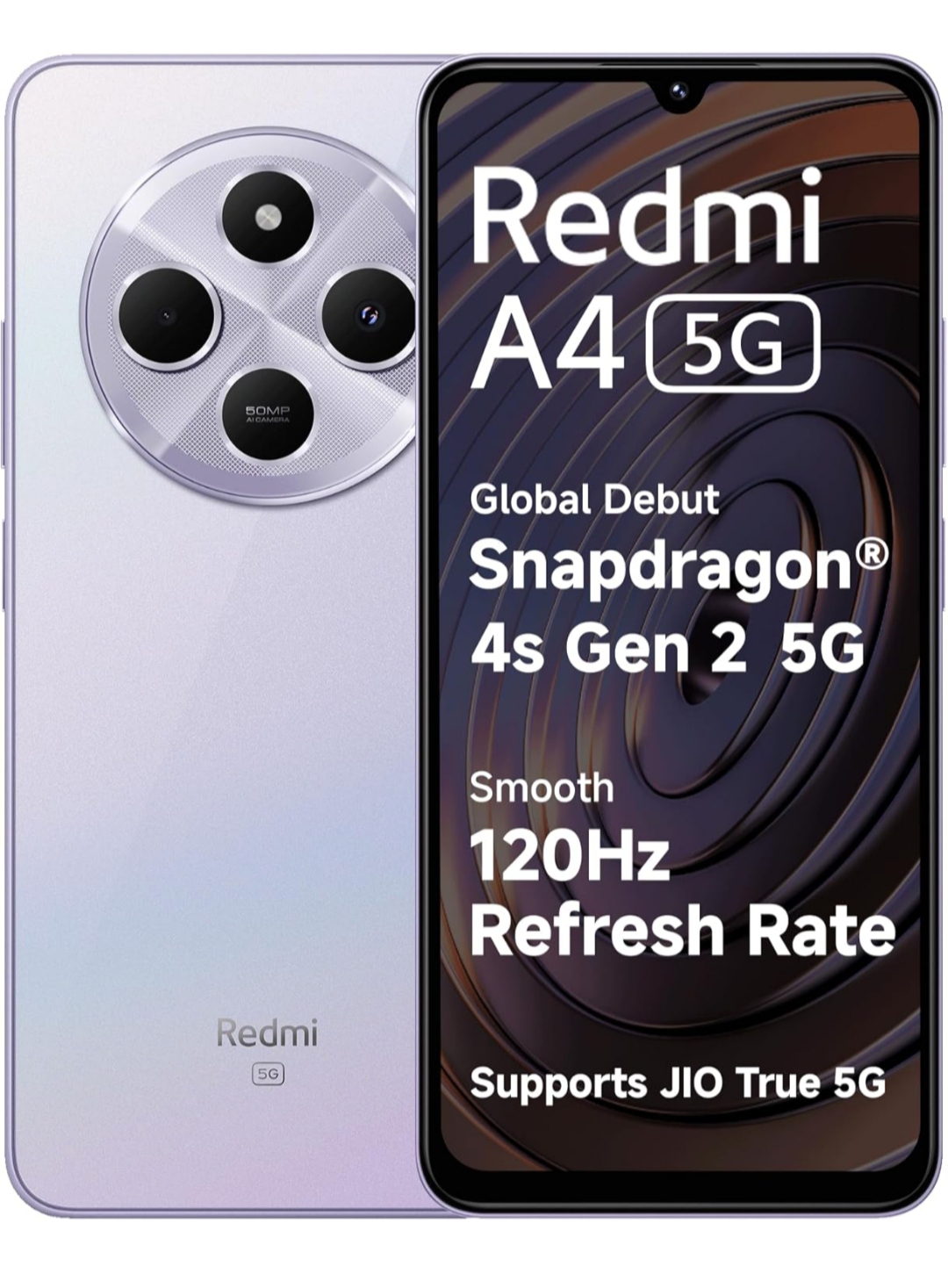 Redmi A4 5G (Sparkle Purple, 4GB RAM, 64GB Storage) | Global Debut SD 4s Gen 2 | Segment Largest 6.88in 120Hz | 50MP Dual Camera | 18W Fast Charging : Amazon.in