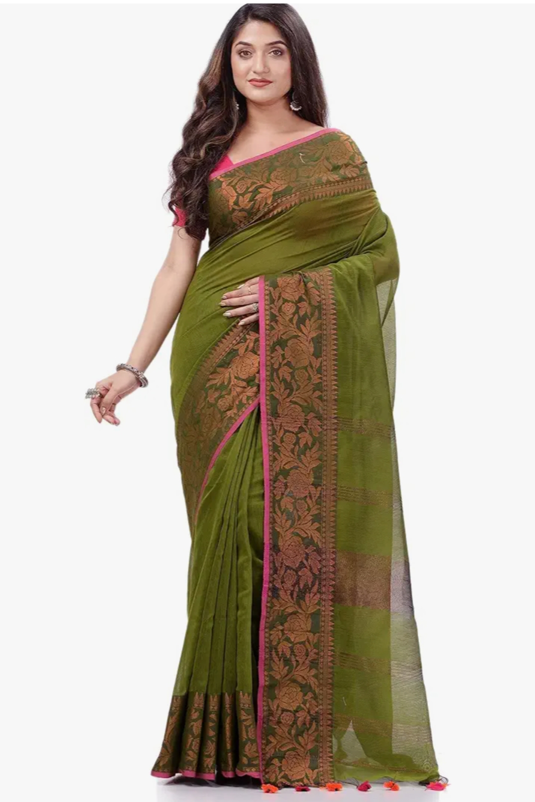 ESHA'S COLLECTION Women's Traditional Pure Cotton Aam Kalka Tant Saree Without Blouse Piece