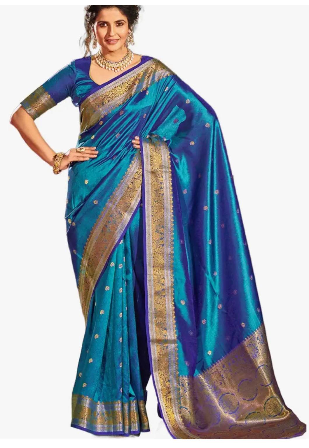 SWORNOF Womens Kanjivaram Silk Saree with Zari Woven Saree With Blouse Piece