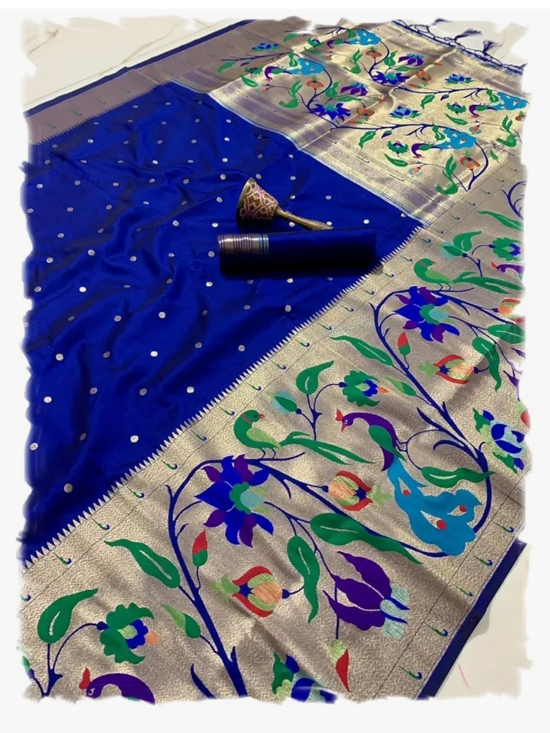 Pandadi Saree Women's Soft Kanchivaram Paithani Silk Brocket Designer Saree With Unstitched Blouse Piece