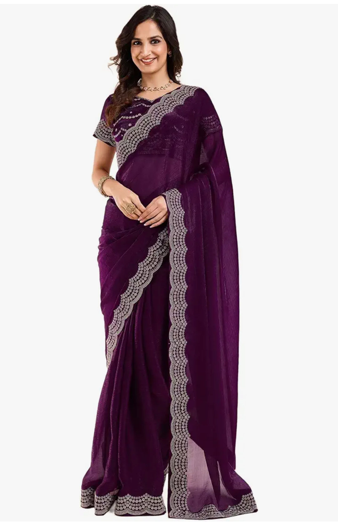 AKHILAM Women's Tissue Beads & Stones Work Saree With Unstitched Blouse Piece (RANI2701_RN_Parent)