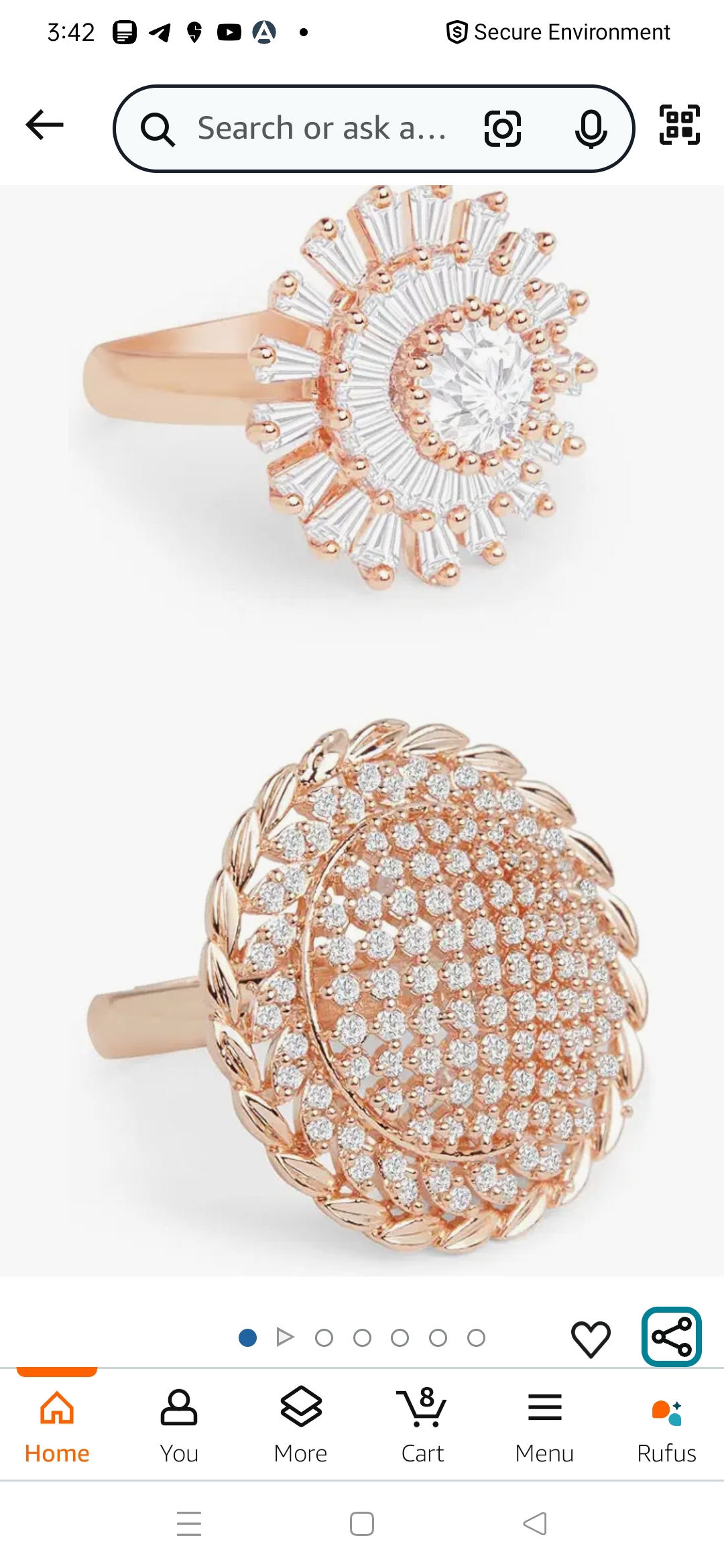 ZAVERI PEARLS Set of 2 Rose Gold Cubic Zirconia Contemporary Adjustable Finger Rings For Women-ZPFK13455