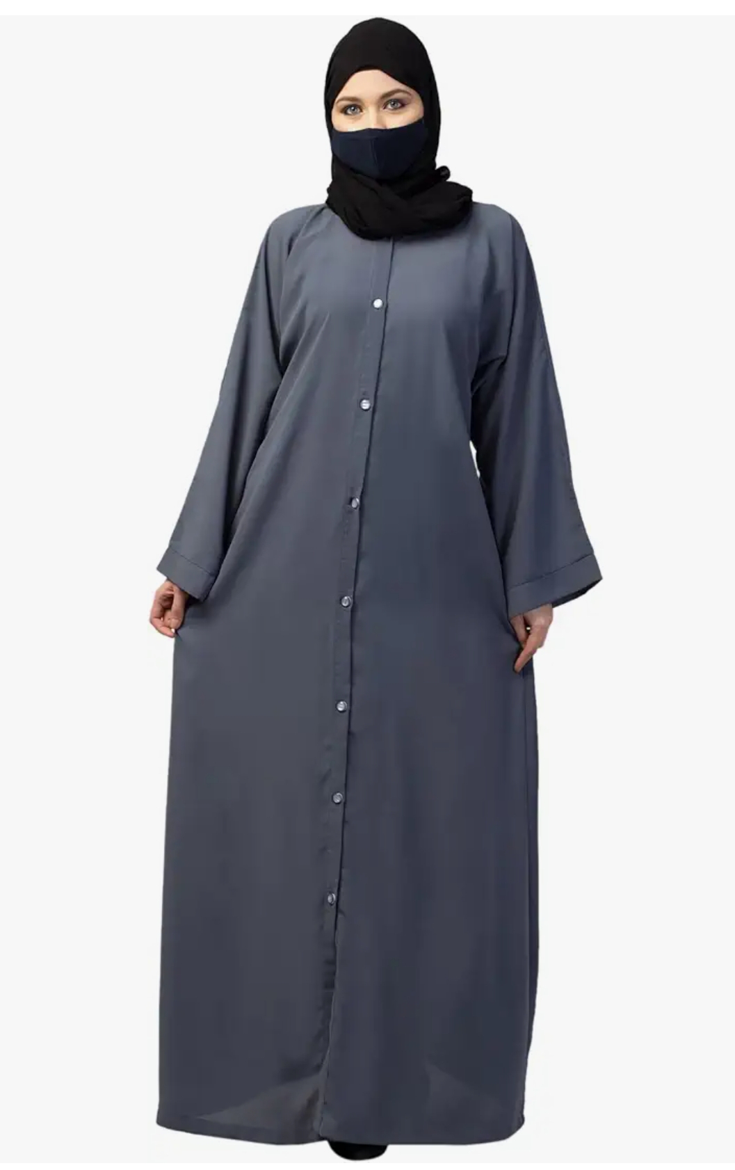 Musheco Basic Front Open Abaya with Cuff and Placket and Side Pockets In Firdaus Fabric (MEAB-020)