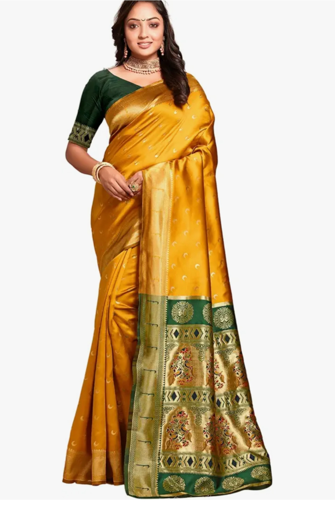 Enterprise Women's Pure Kanjivaram Silk Saree Soft Banarasi Style Wedding With Blouse Piece (Chand paithani)