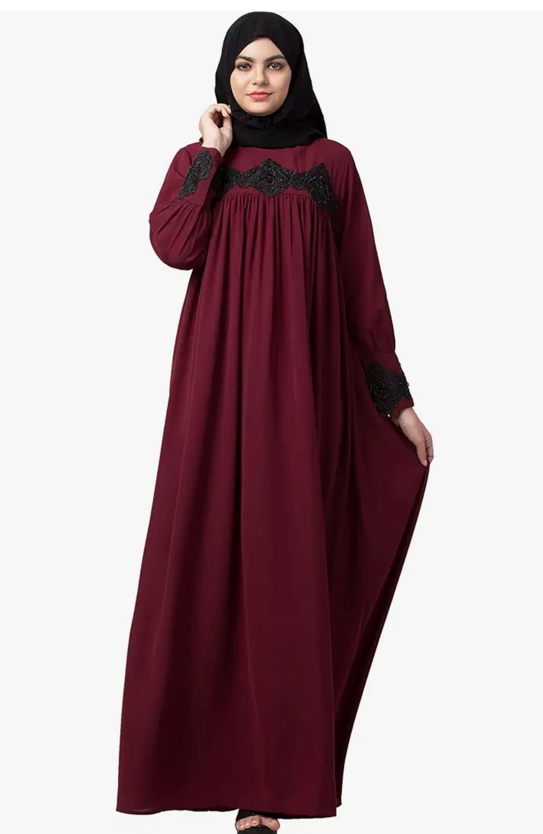 Mushkiya Beautiful Designer Abaya Like Dress with Pearl Lace Work for Women That Falls Loose from Chest