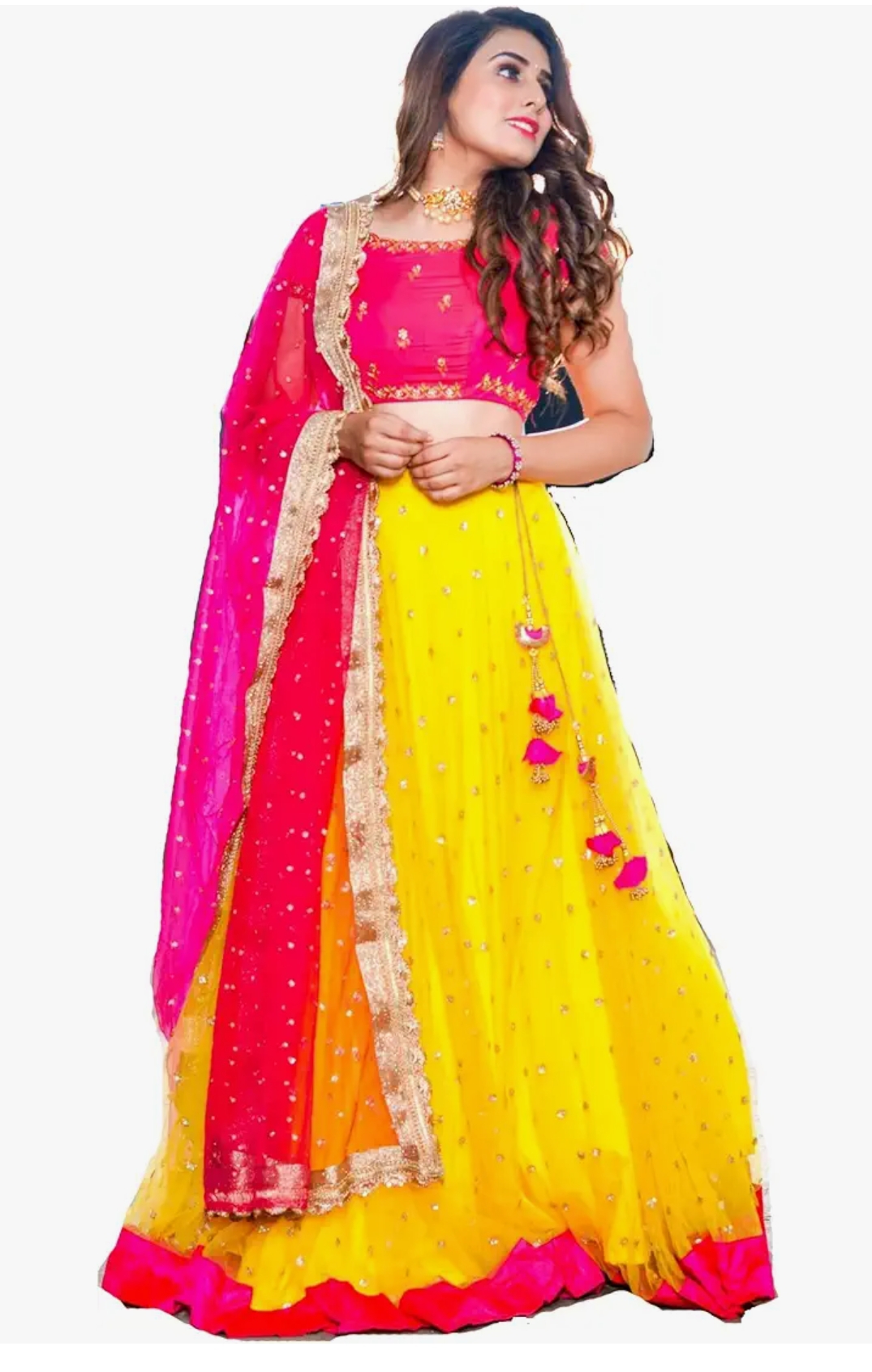 Nena Fashion Women Silk Semi-Stitched Lehenga Choli (Lehengha Choli For Womens_Yellow_Free Size)