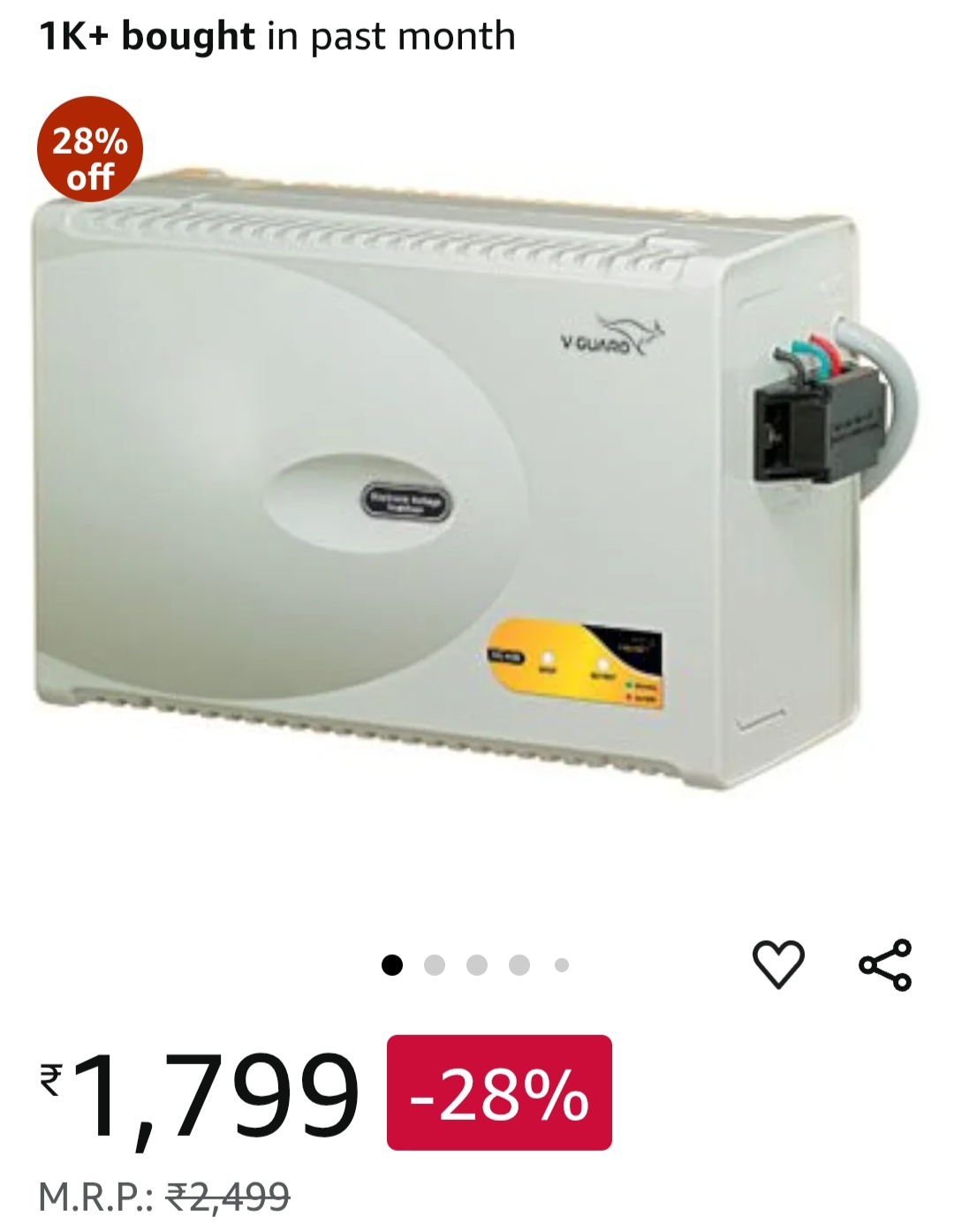 V-Guard VG 400 for 1.5 Ton A.C (170V to 270V) Original 3 Year onsite wrranty,GREY