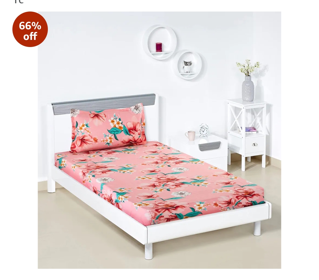 Amazon Brand - Solimo Polyester Rose Bloom Single Bedsheet with 1 Pillow Cover, Multicolor, 120 GSM, 144