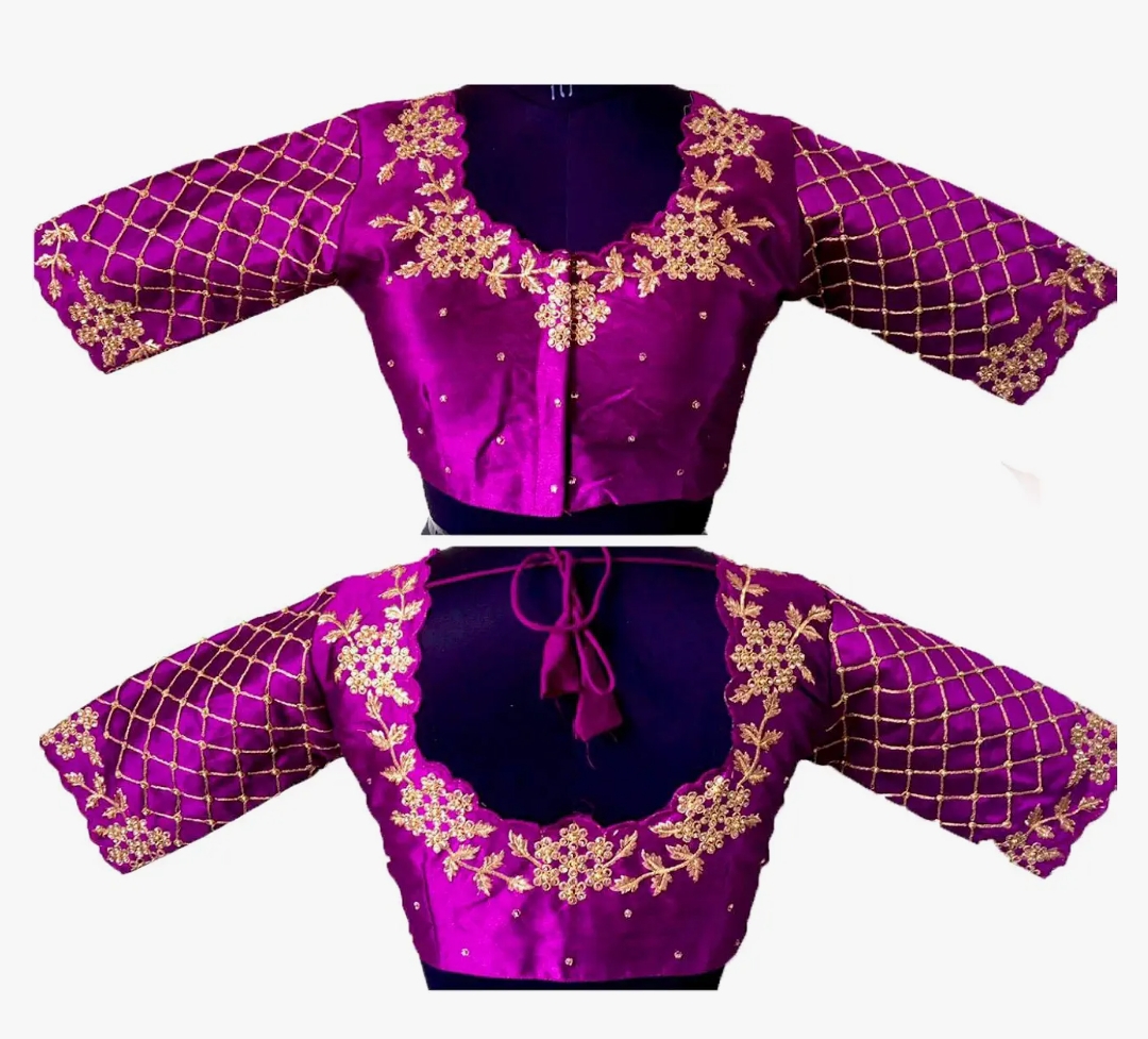 Pujia Mills women's embroidery handwork, rough cut work stone work readymade blouse