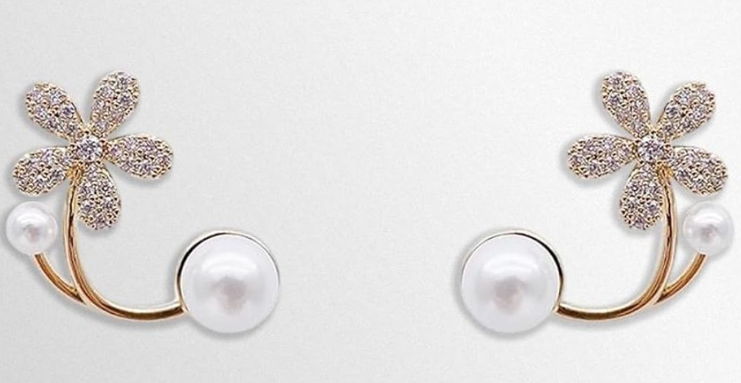 Shining Diva Fashion Latest Stylish White Pearl Flower Earrings