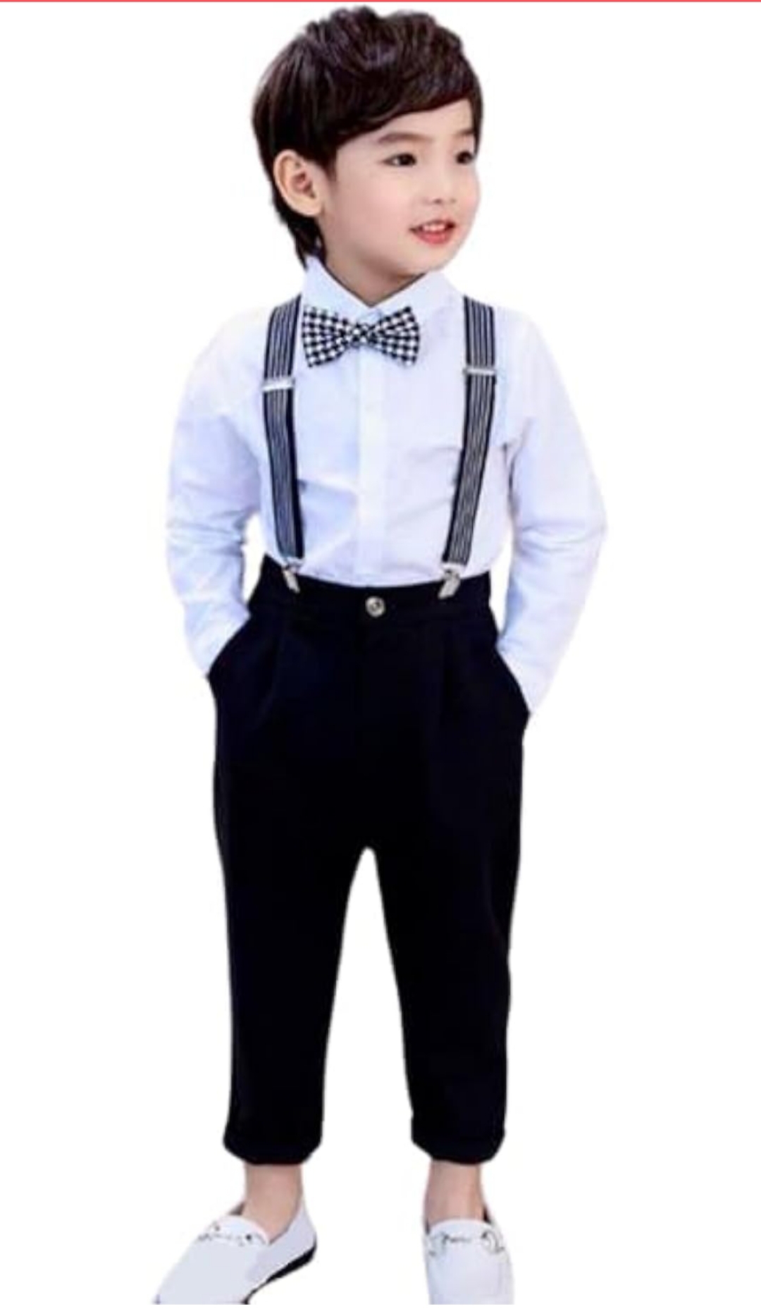 Buy Siddhi Clothing Exclusive Boys Shirt, Pant, Suspenders And Bow Tie In Kids Comfortable Fabrics And Best Stitching Quality Of Suspender Dungaree Set Solid(Suitable For Parties), White at Amazon.in