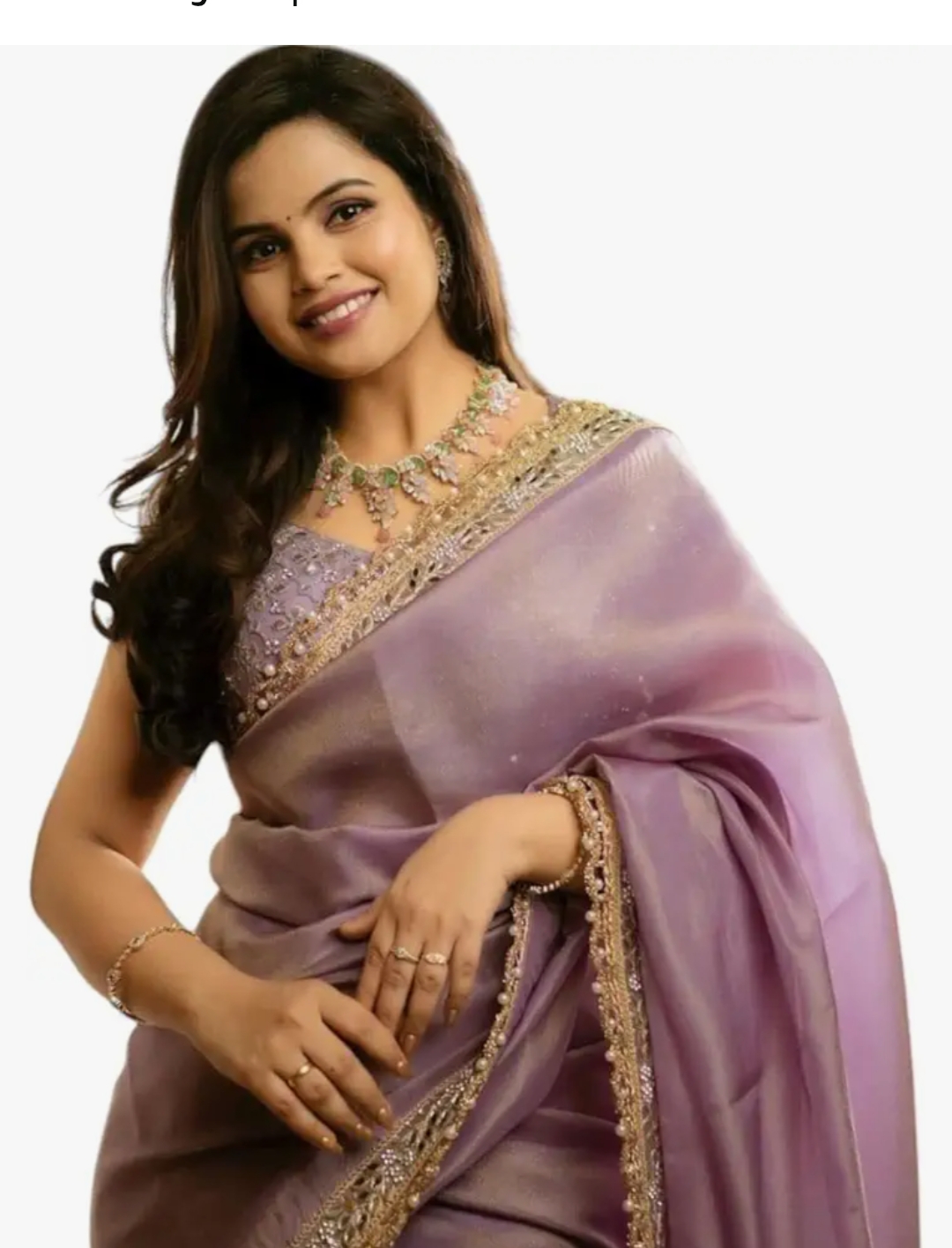 MUNIR Women's Silver Tissue Silk Ethnic Saree With Unstiched Blouse Piece For Festival And Function.