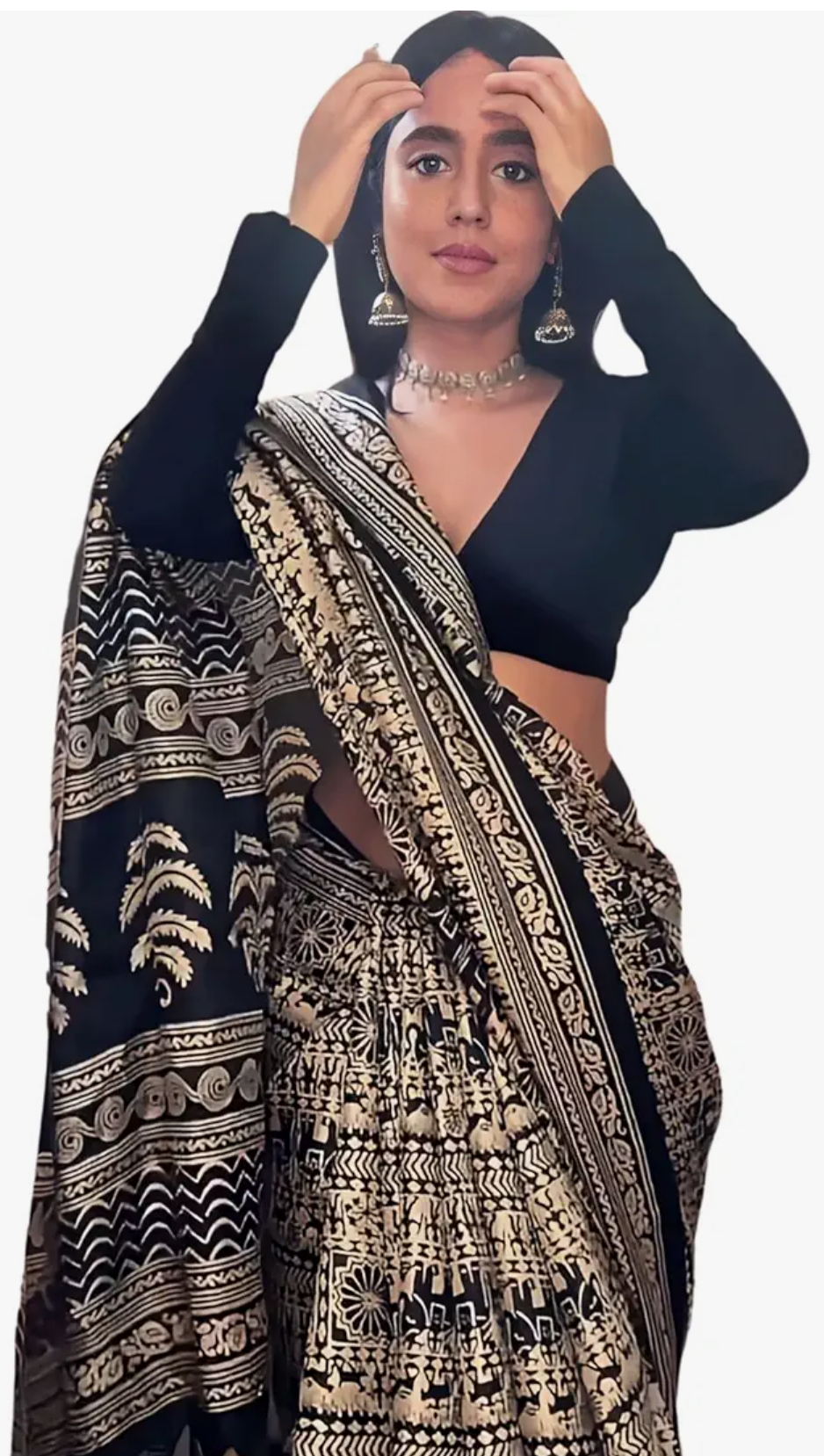 EthnicJunction Women's Silk Cotton Kalamkari Print Saree With Blouse Piece