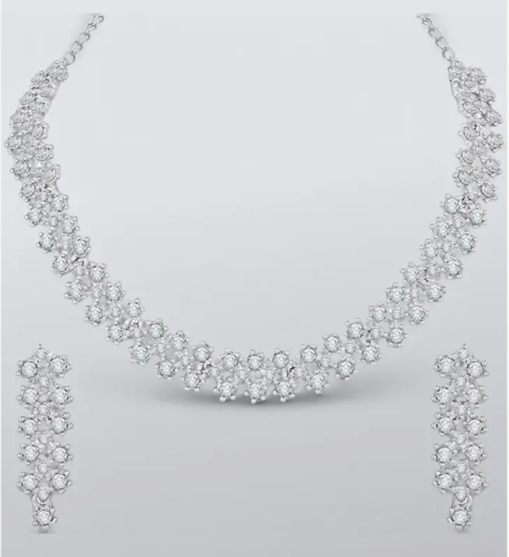 Atasi International White Stones/AD Diamond Necklace with Earrings - Jewellery Set for Women, Girls Best Suits for Party, Wedding and Festive Occasions