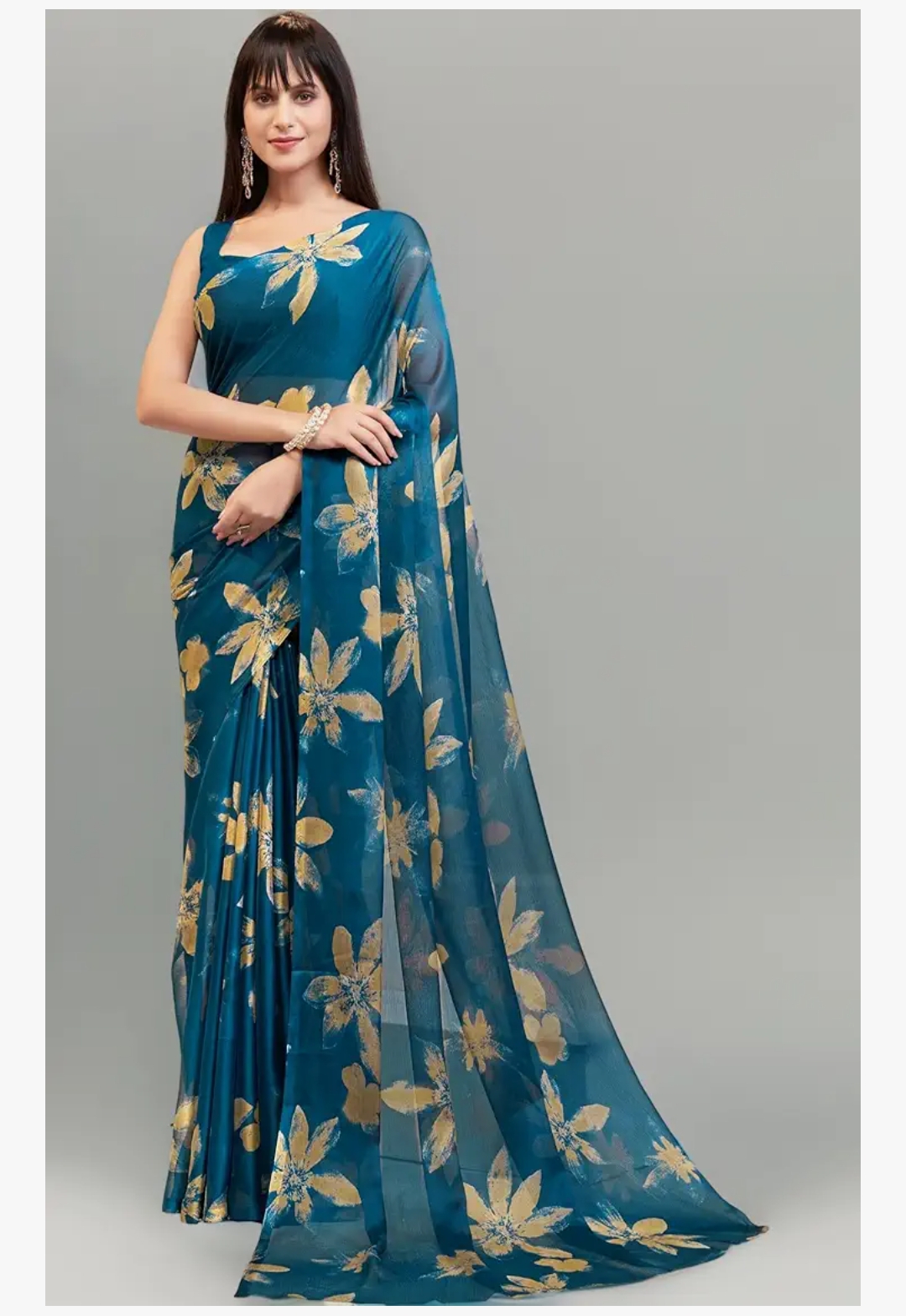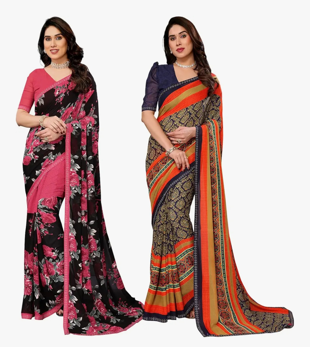 ANAND SAREES Women's Georgette Embellished, Printed, Self Design Bollywood Saree with Matching Blouse Piece | Stylish & Fancy Saree for Wedding, Parties, Casual Outings, Festivals (Combo Pack of 2)