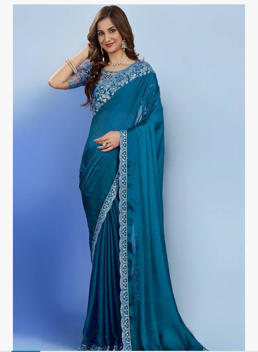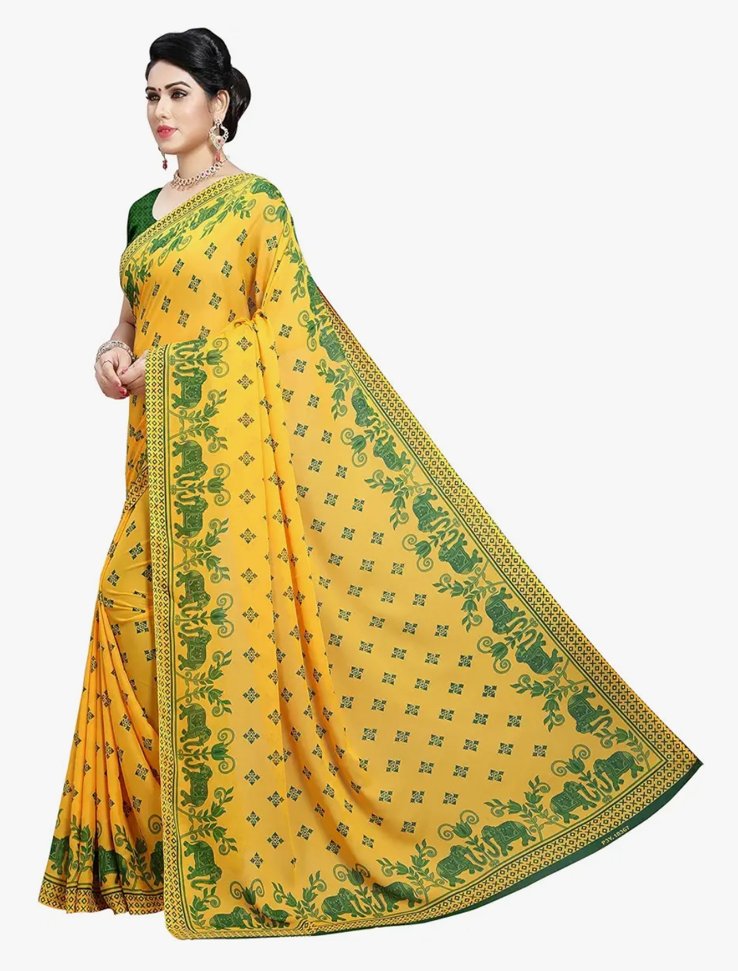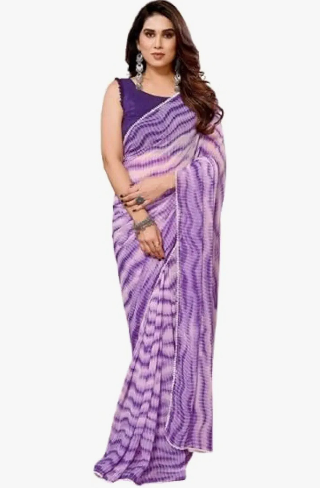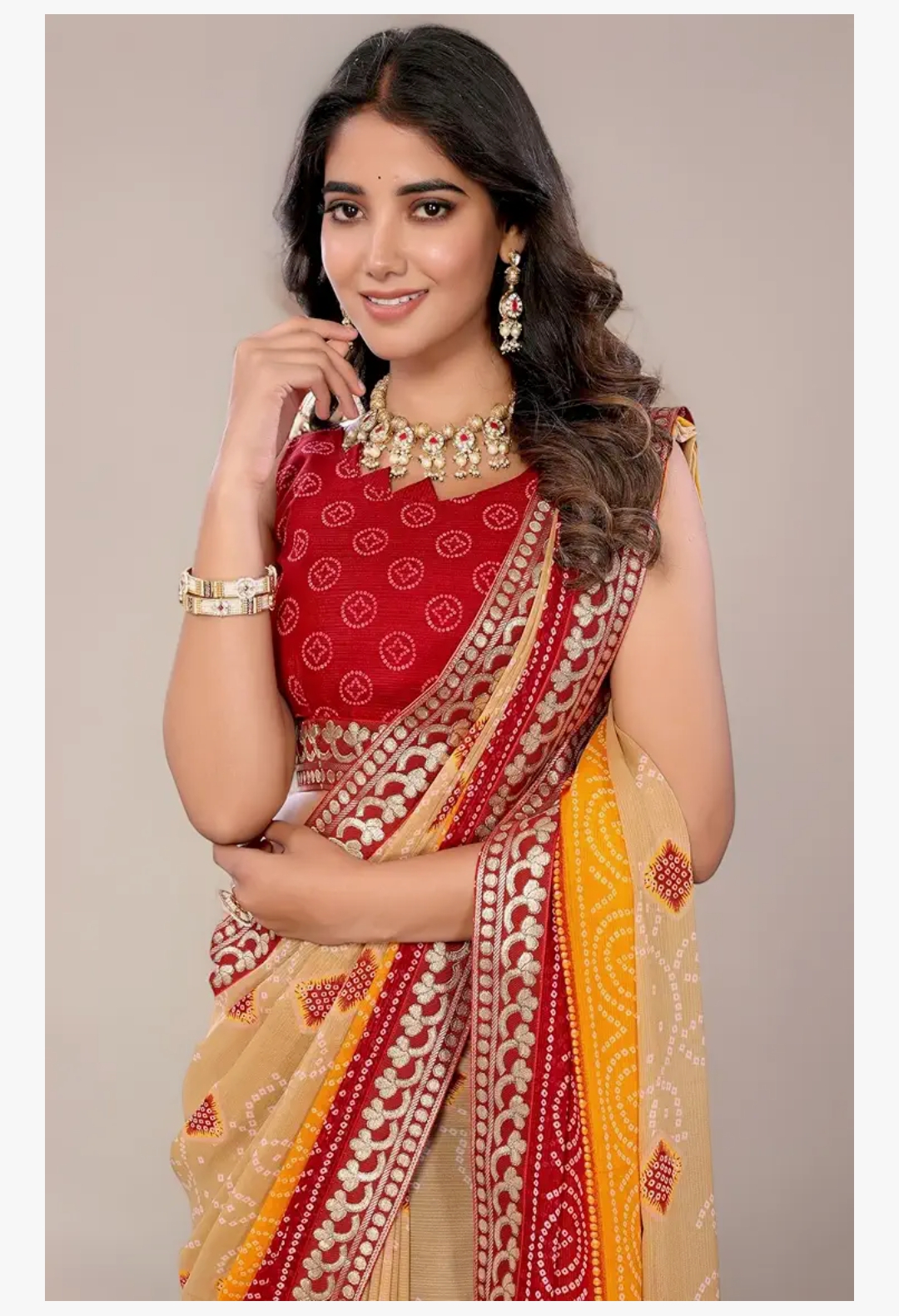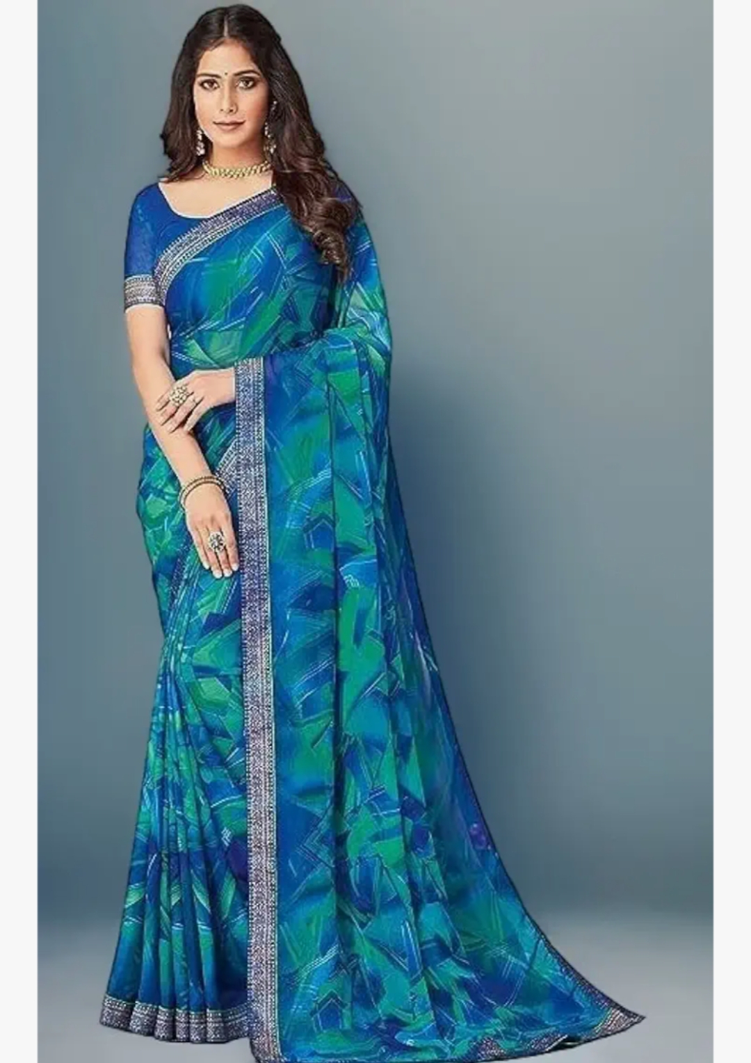 Yashika Women's Latest Georgette Ethnic Wear Saree With Lace And Blouse Material