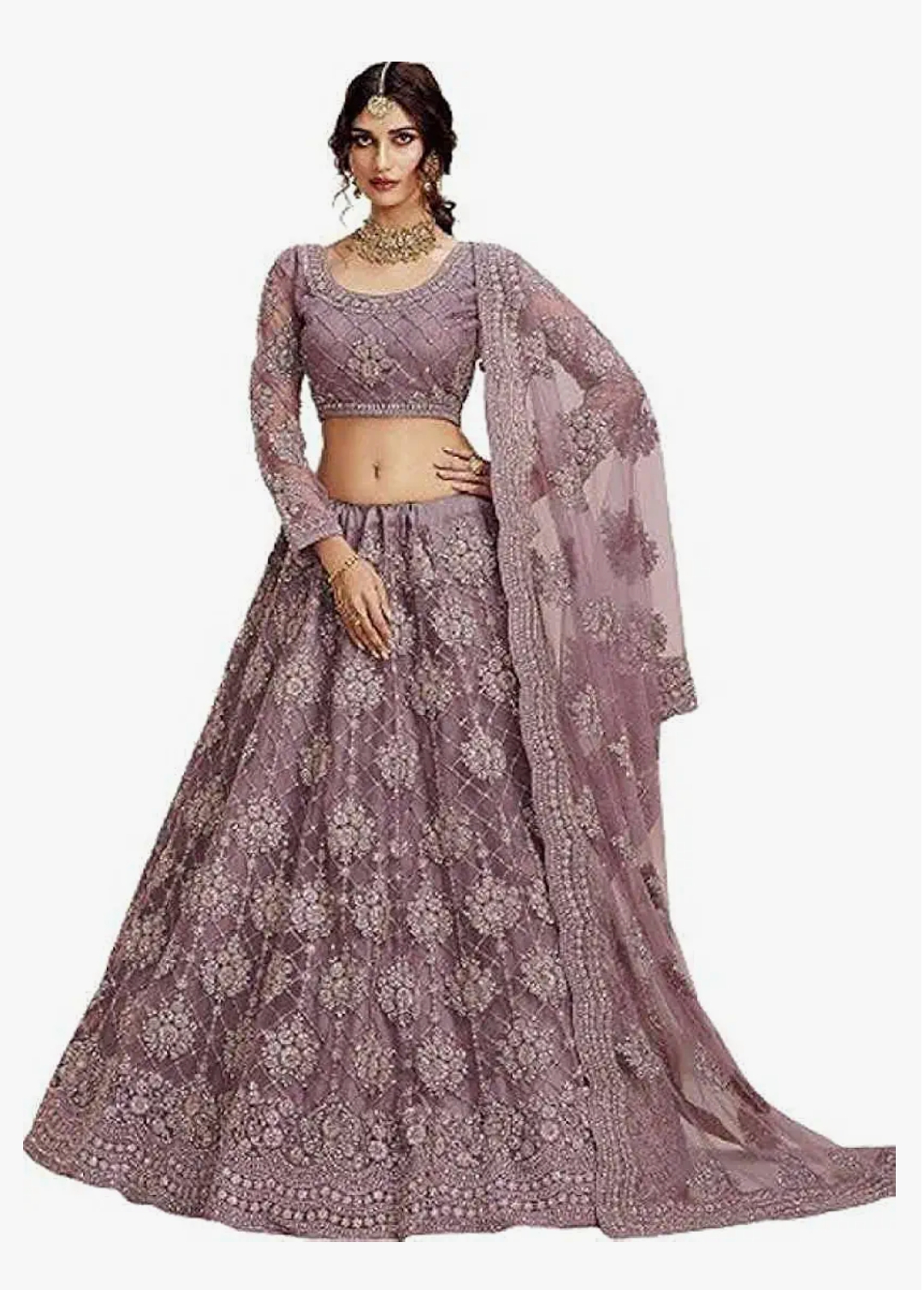 PATLANI Women's Net Semi-Stitched Lehenga Choli Purple Free Size