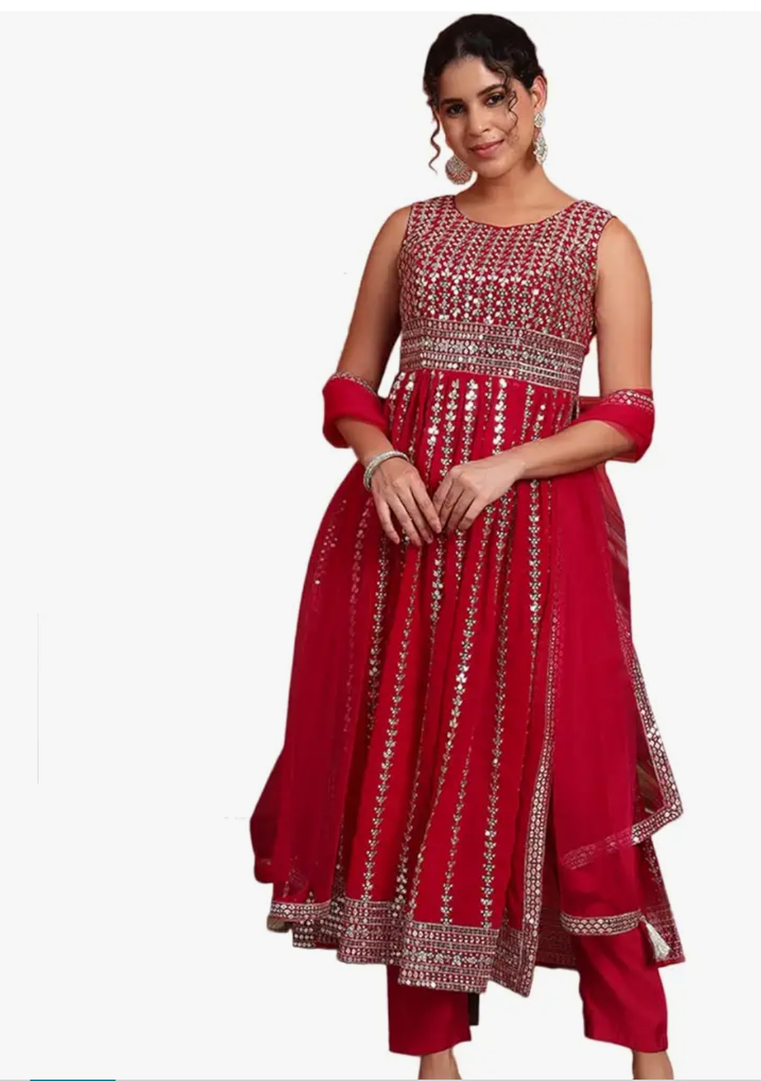 SHOPPING QUEEN Women's Georgette Sequins Kurta, Pyjama & Dupatta Set