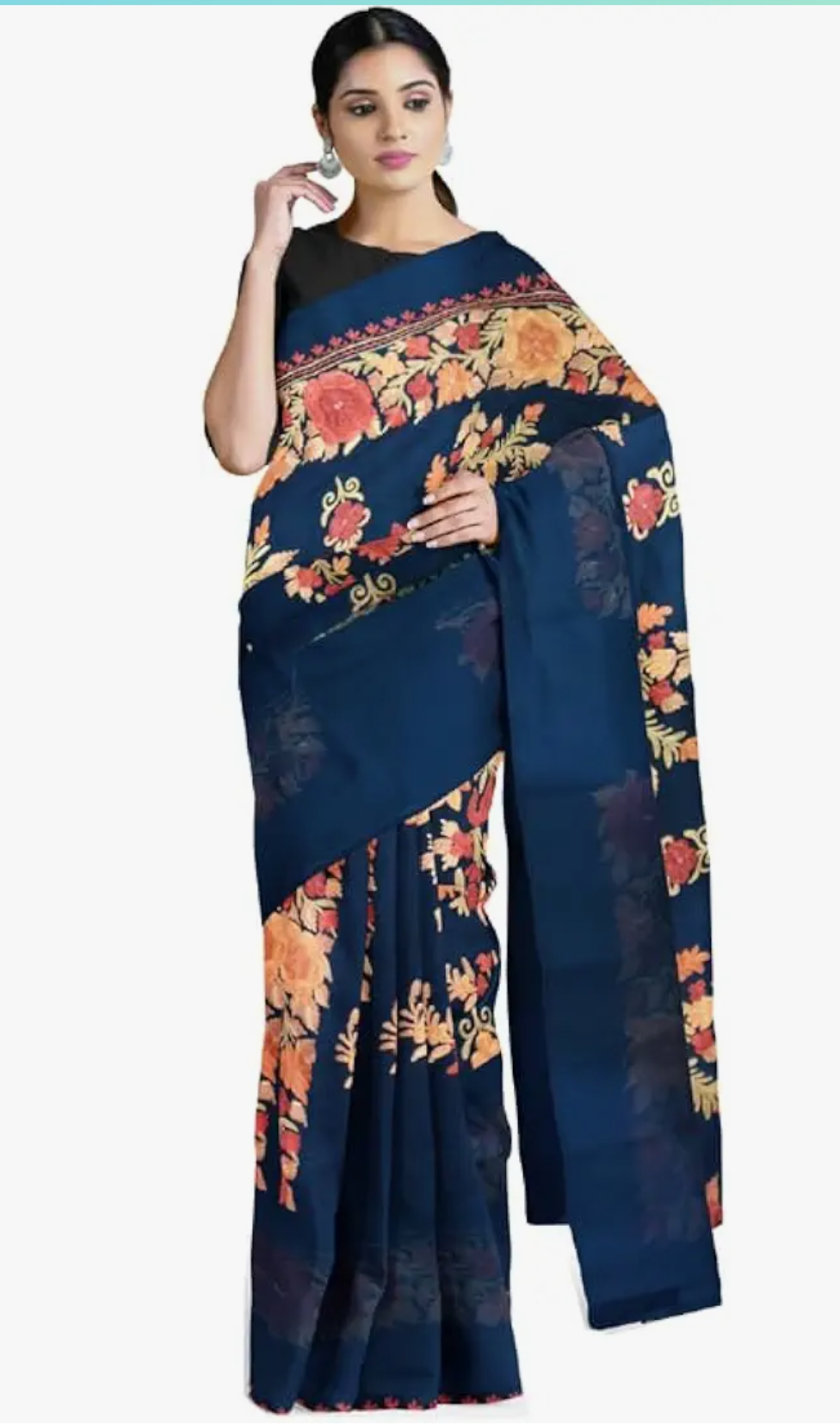 Kashmir Gallery- Women's Georgette Sarees Embroidered with Kashmiri Aari work | Stylish Saree with Unstitched Blouse Pieces