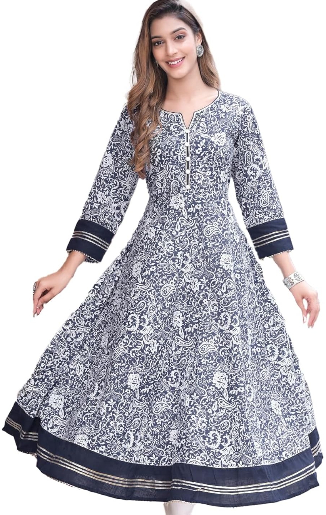 Yash Gallery Women's Cotton Floral Printed Anarkali Kurta for Women