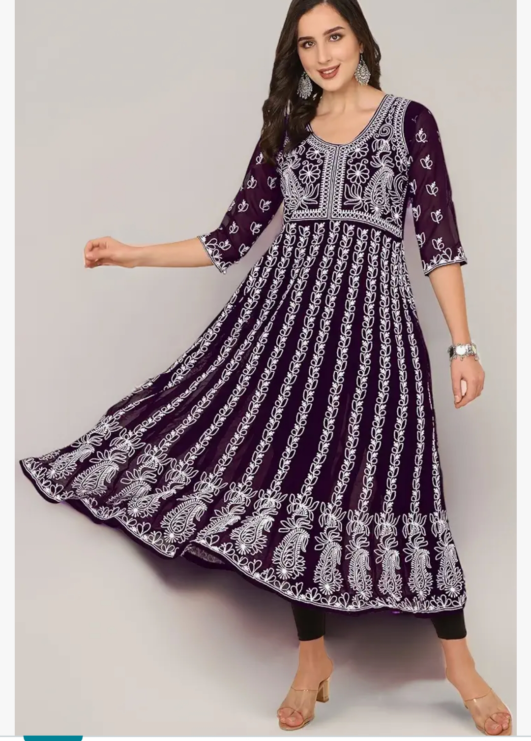 EthnicJunction Women's Georgette Regular Fit Anarkali Chikankari Embroidered Eid Special Kurta | Eid Outfits