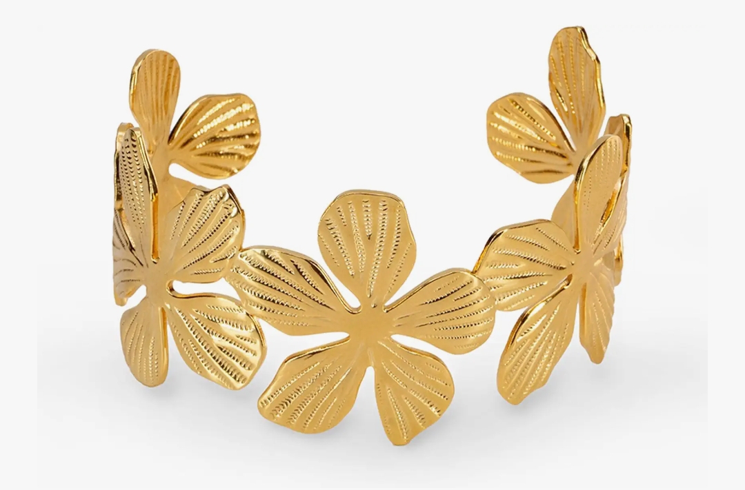 AMALFA Bracelets for Women 18K Gold Plated Lightweight Stylish Trendy Adjustable Flower Bangle, Latest Western Jewellery Olivia Floral Cuff