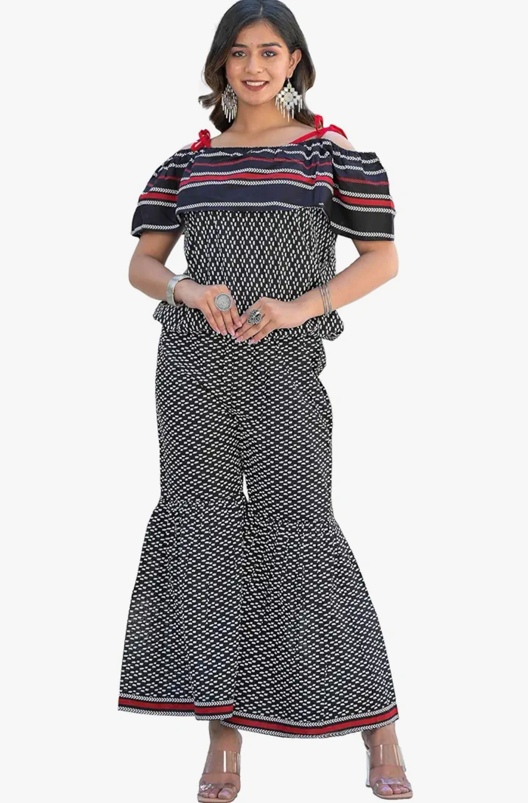Yash Gallery Women's Maxi Cotton Geometric Two Piece Dress for Women
