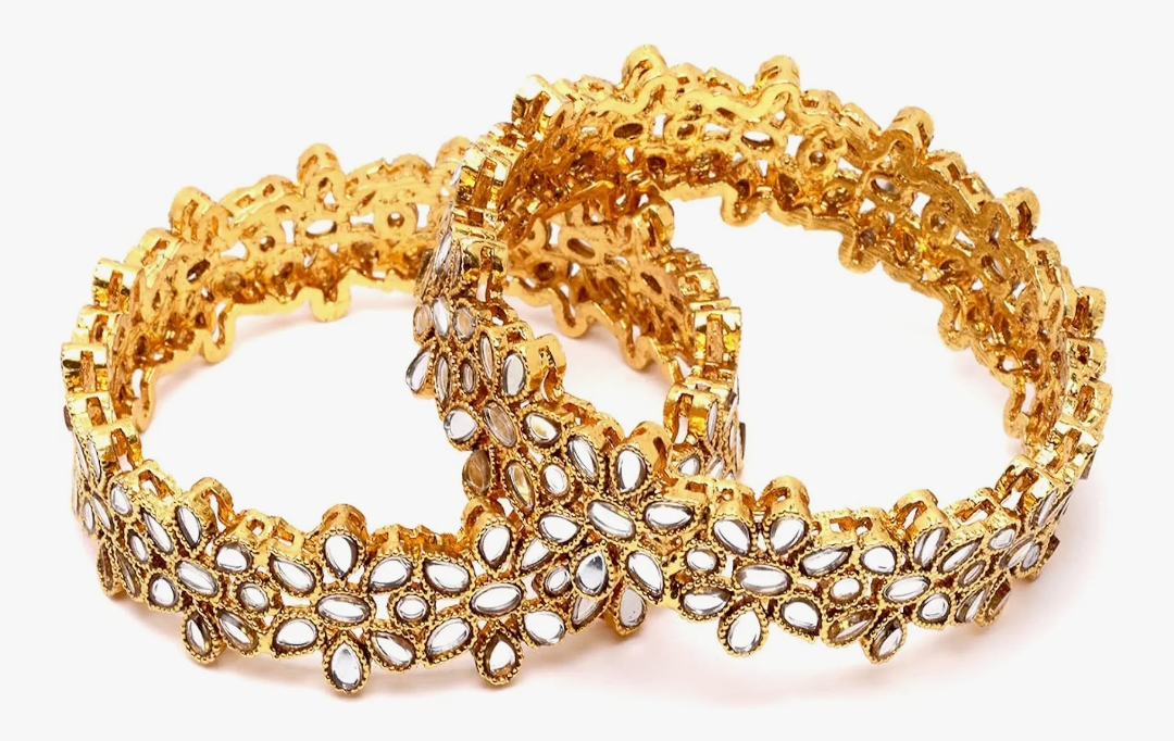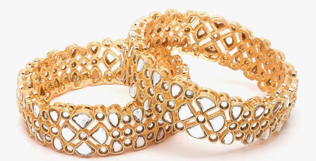 Karatcart Antique Gold Plated Set of 2 Mirror Studded Bangles for Women