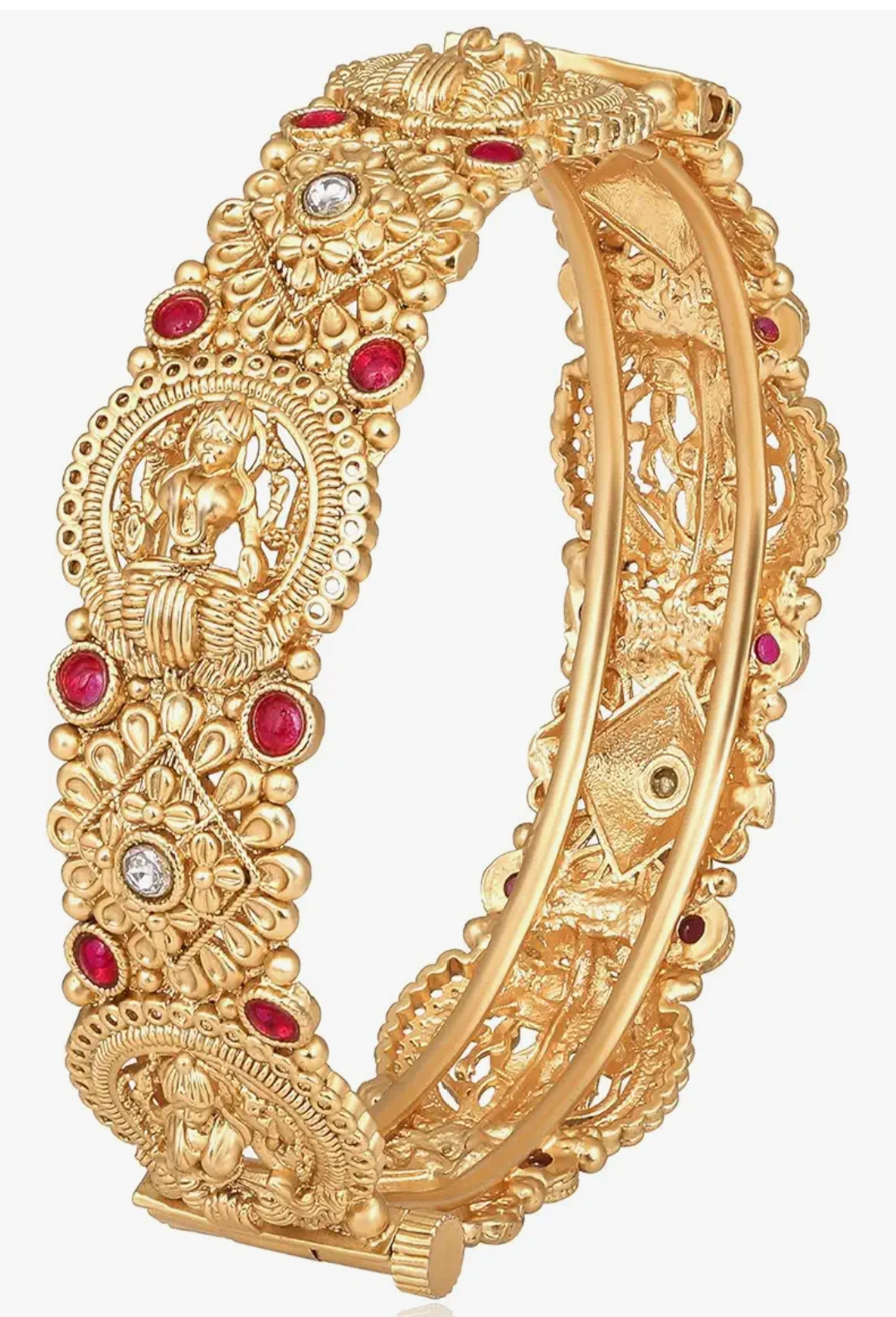 Peora Gold Plated Goddess Laxmi Thick Synthetic Stone Studded Single Piece Openable Kada Bangle Antique Jewellery for Women