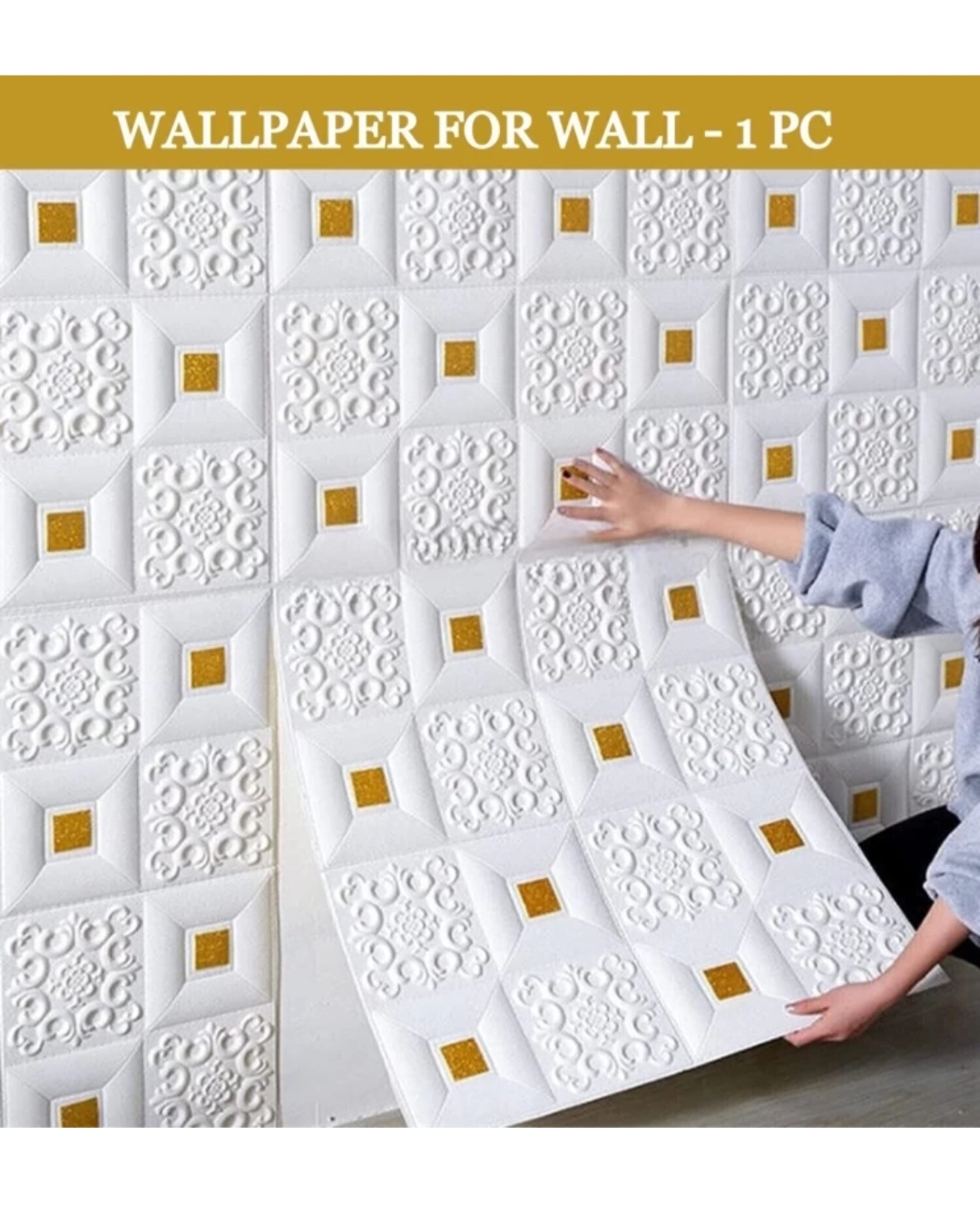 metreno Decorative Gold, White Wallpaper