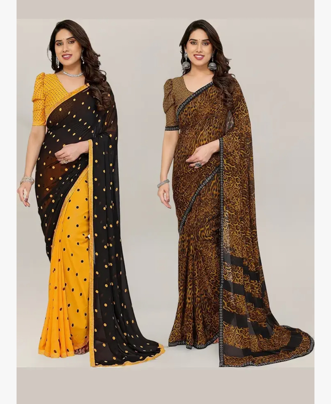 Printed, Self Design Bollywood Saree with Matching Blouse Piece | Stylish & Fancy Saree for Wedding, Parties, Casual Outings, Festivals (Combo Pack of 2)