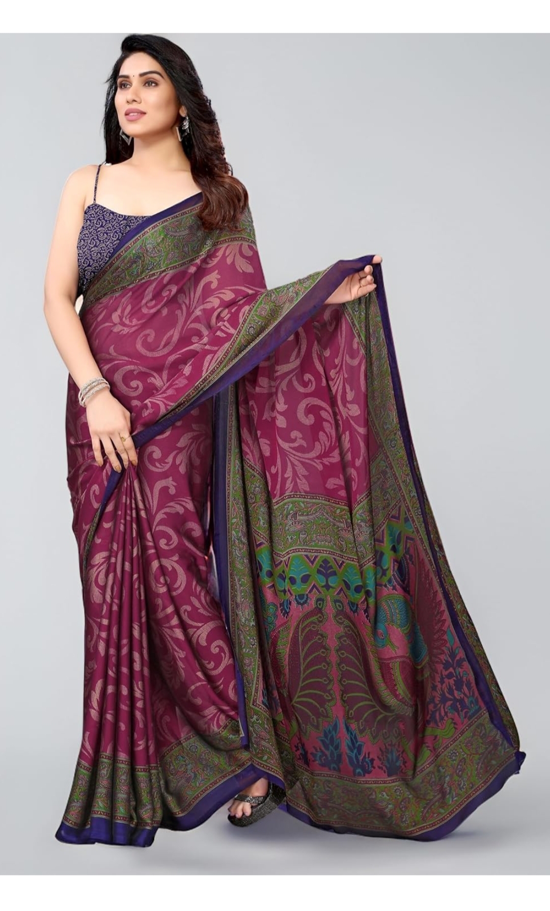 Chiffon Kalamkari Printed Saree