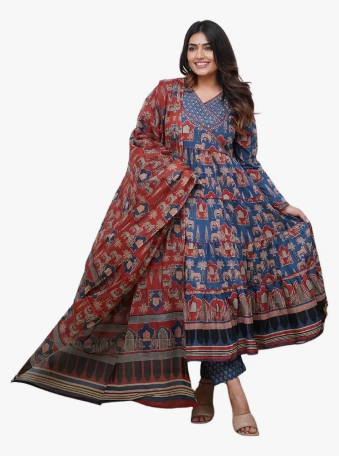GRECIILOOKS Women'S Rayon Anarkali Printed V- Neck Kurta With Palazzo & Dupatta | Ethnic Set | Dupatta Set | Suit Set | Kurta And Pant Set