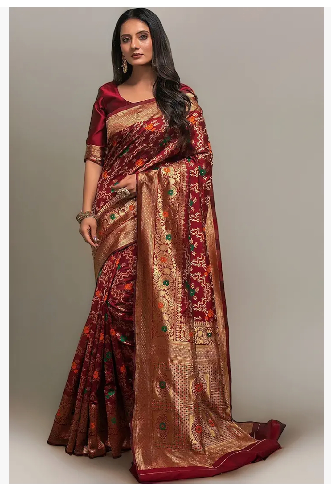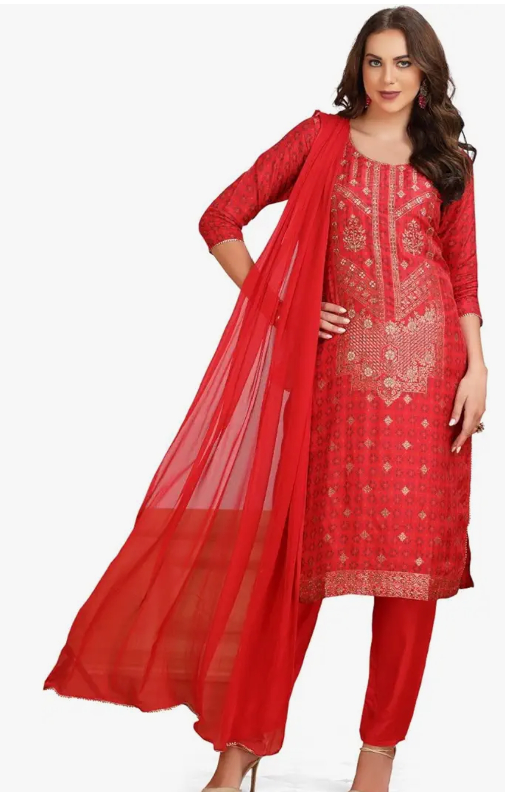 GREAT OUTFITS Red Silk Kurta Set Banarasi and Ajrakh Fusion with Hand Embroidery