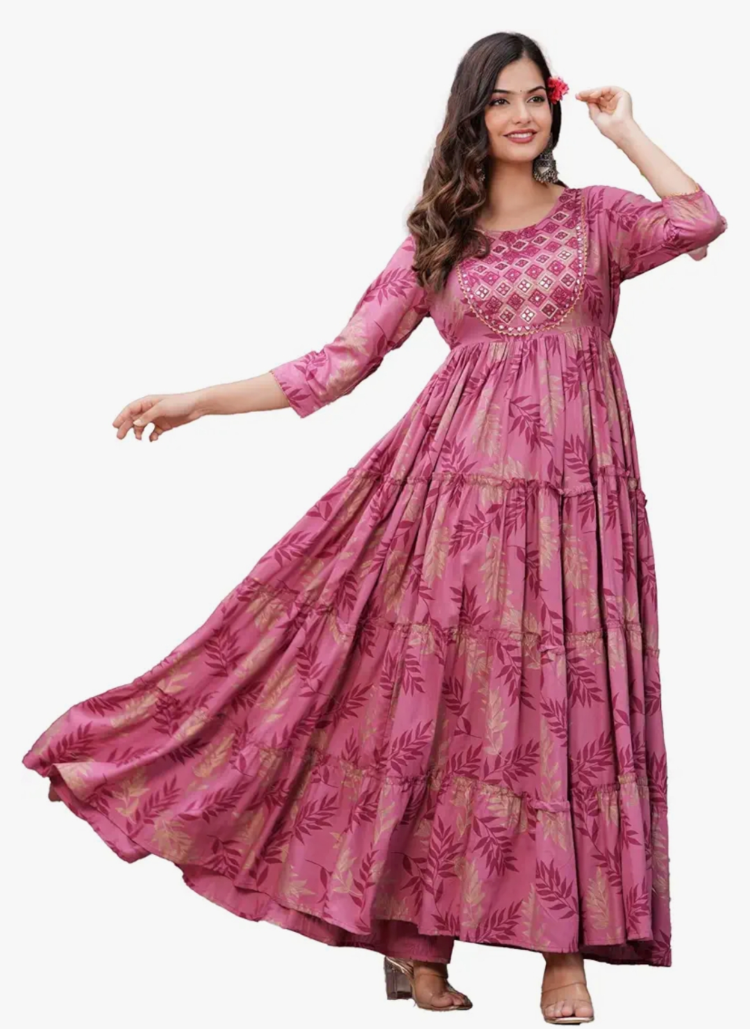 GEHU GARMENTS Women Printed Rayon Embroidery Kurta for Casual wear