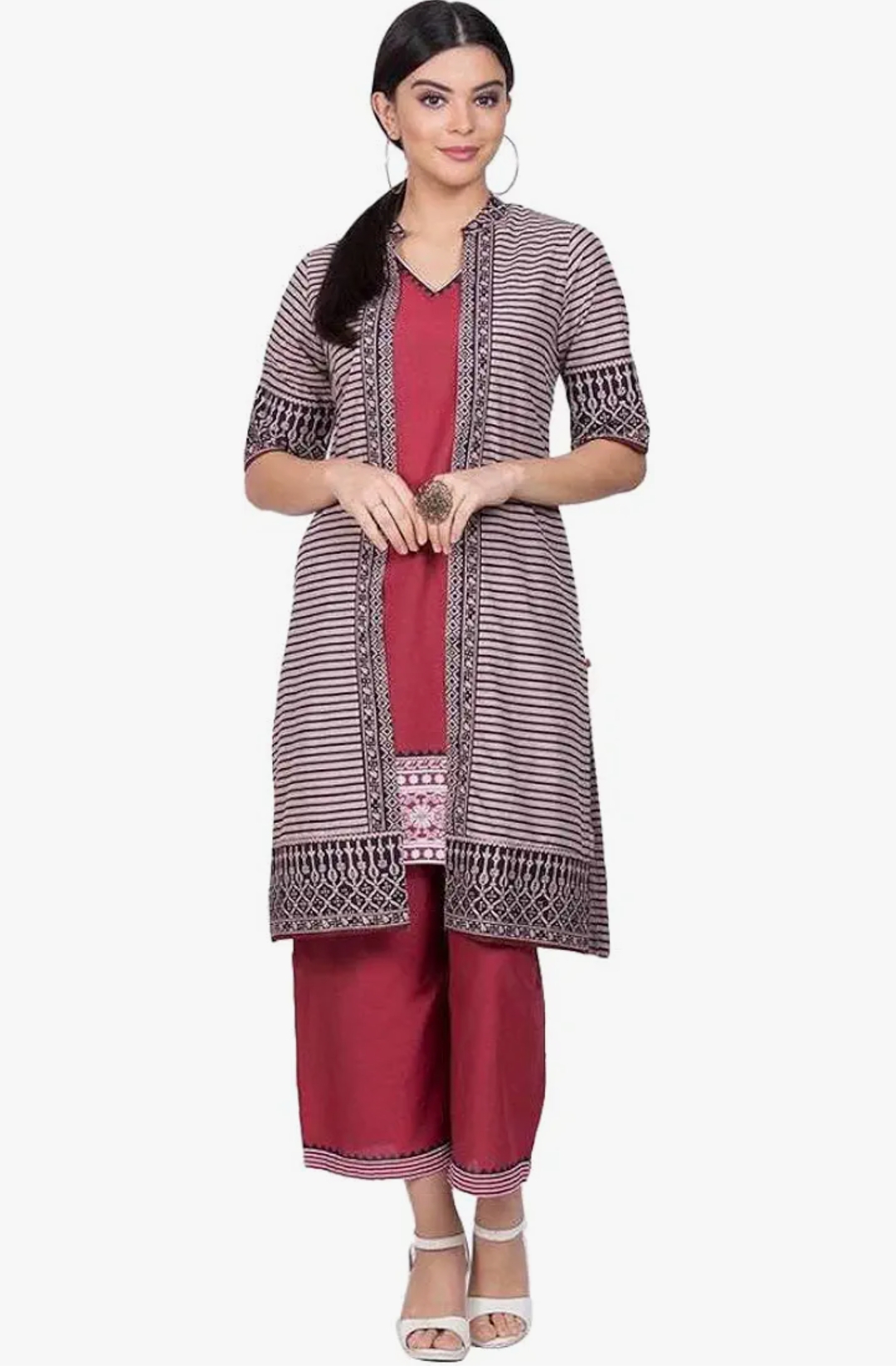 BIBA Women Cotton Fusion Wear Set Straight Kurta