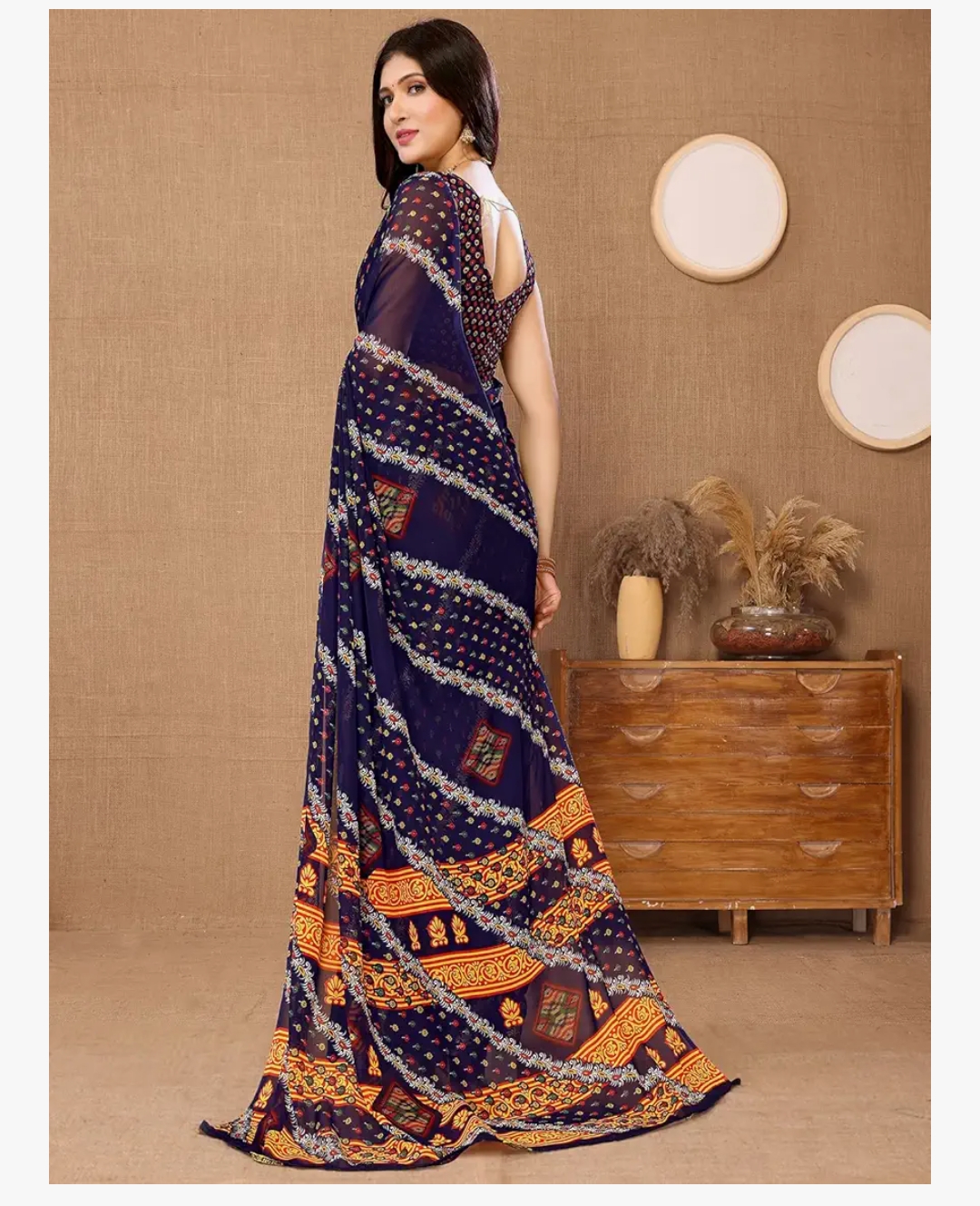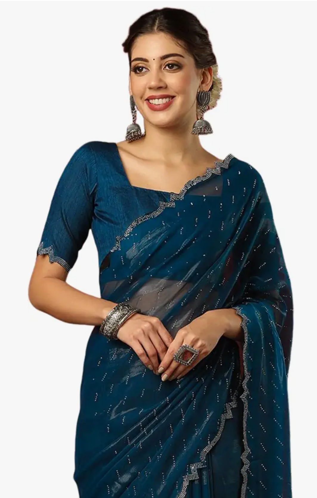 SIRIL Women's Georgette Hot Fixing Stone Work Saree with Unstitched Blouse Piece