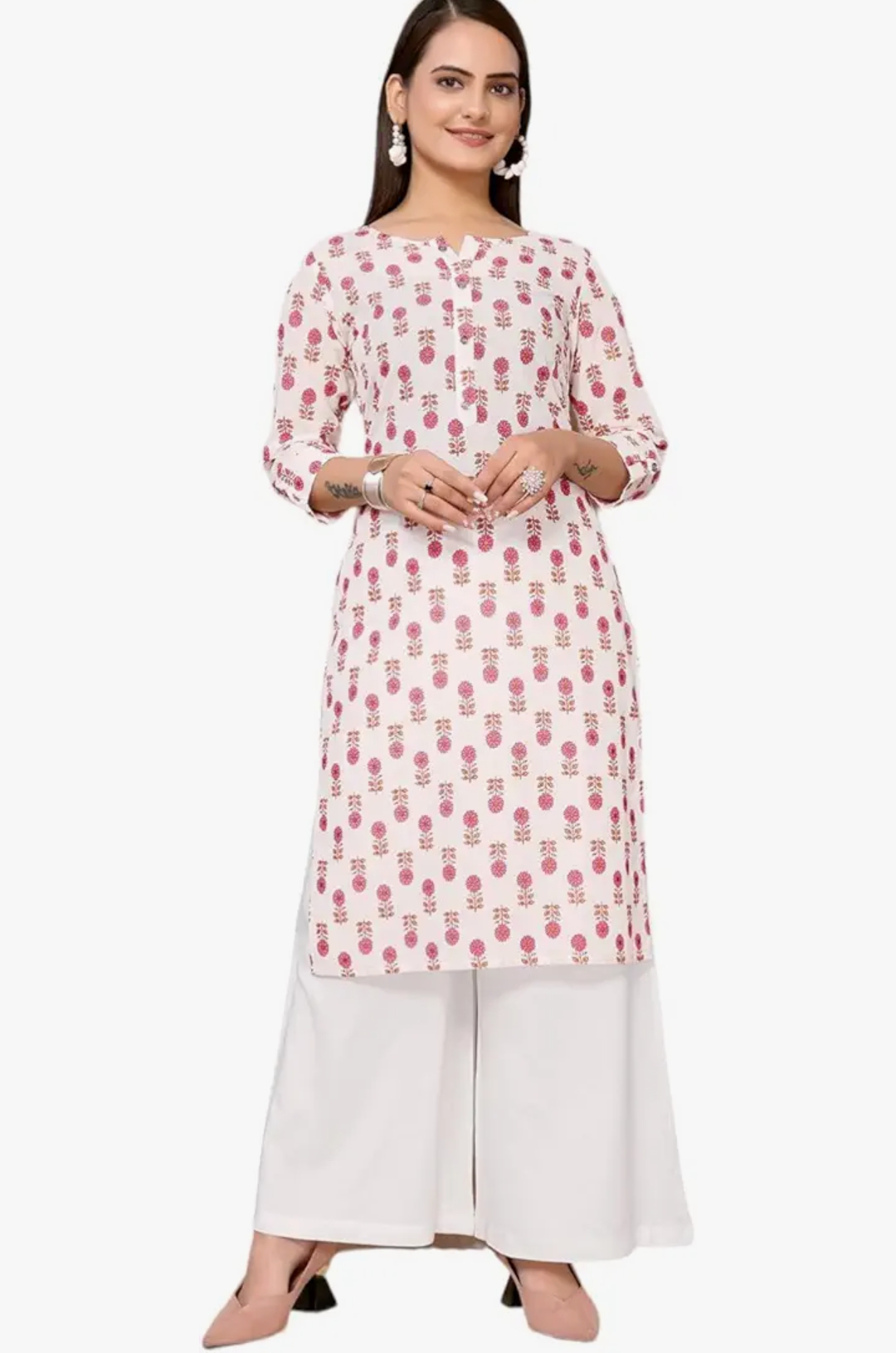 rangita White Cotton Knee Length Printed Straight Kurti for Women | Kurta for Women