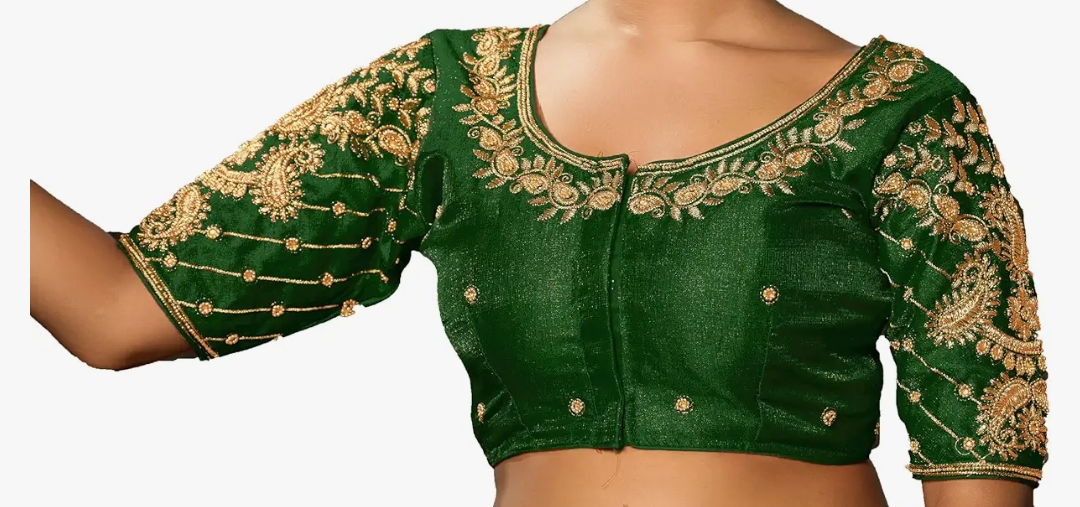 Pujia Mills Women's Readymade Blouse Embroidery Multi Coding maggam Work Sequence Work Indian Ethnic Designer Stitched Readymade Saree Half Sleeve Blouse for Women for Saree Lehenga Choli