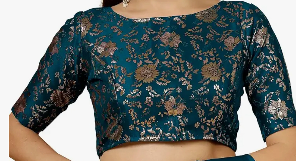 OOMPH! Readymade Blouse for Women, Floral Brocade, Boat Neck