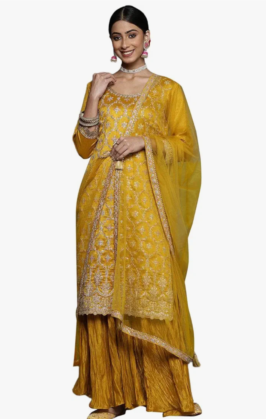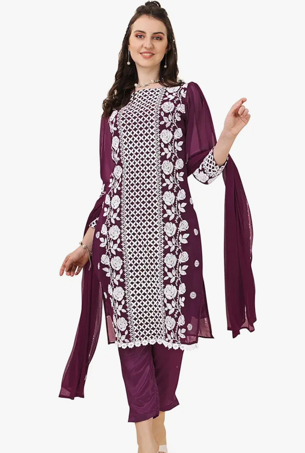 EthnicJunction Women's Georgette EID Special Chikankari Embroidery Kurta Pant and Dupatta Set | eid Outfits for Women