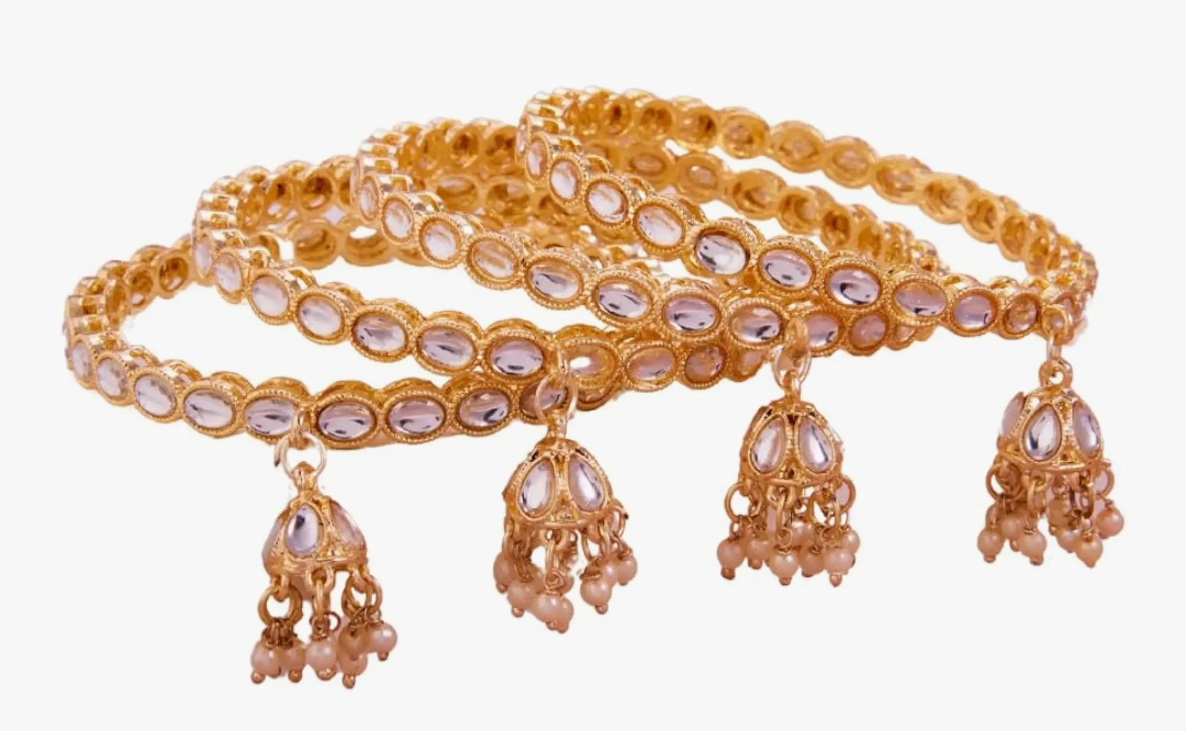 GC PREMIUM JEWELLERY Traditional Gold-Plated Pearl Bangles Set with Jhumki Drops, 4 Pieces