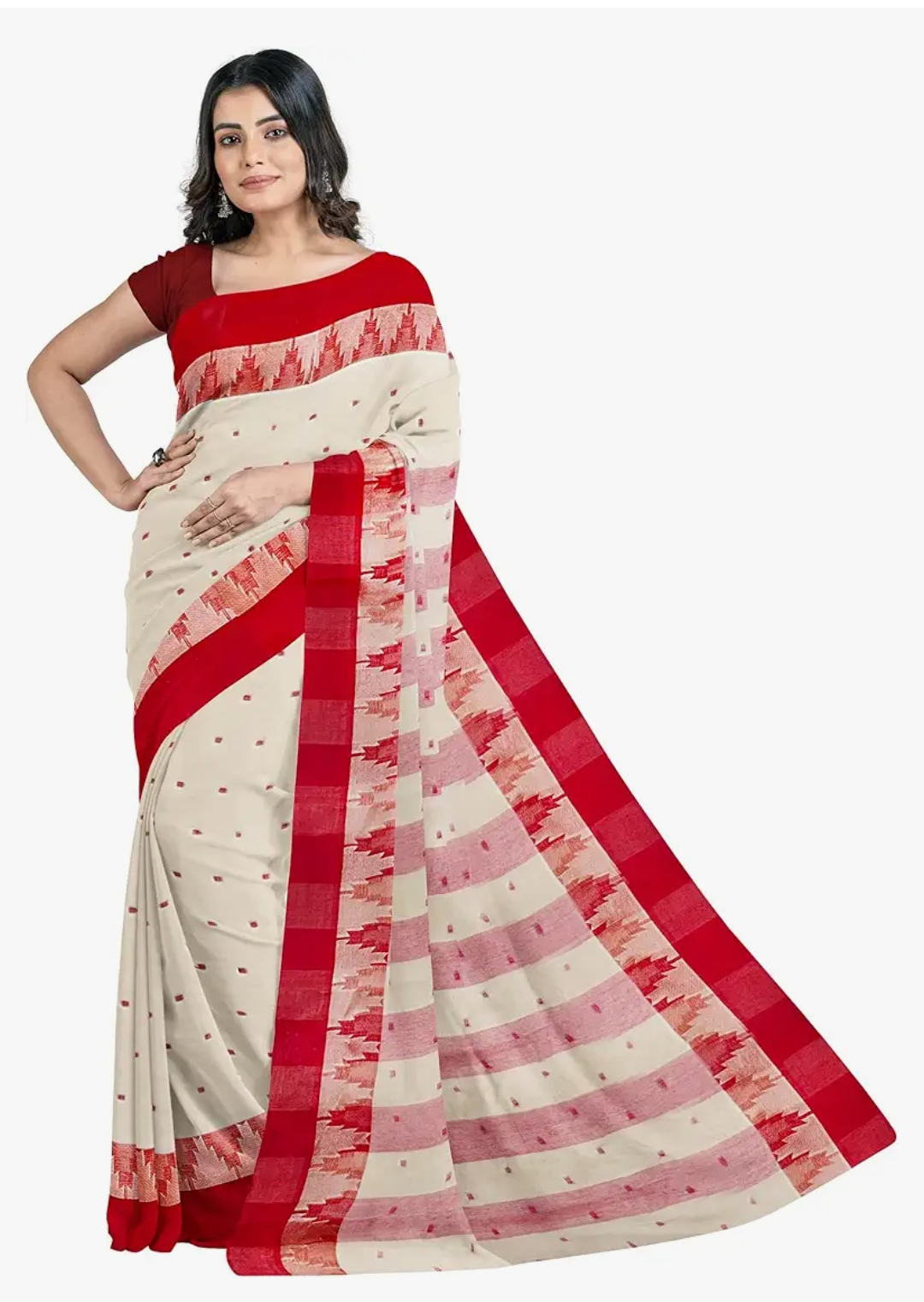 eC ESHA'S COLLECTION Women's Traditional Pure Cotton Aam Kalka Tant Saree Without Blouse Piece (Biscuit, Red)