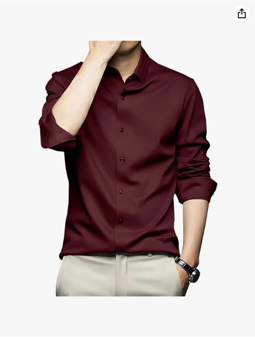 DEELMO Men's Stylish Solid Satin Casual Shirt for Men Full Sleeves| Poly Satin Silk Shirt Maroon : Amazon.in: Clothing & Accessories